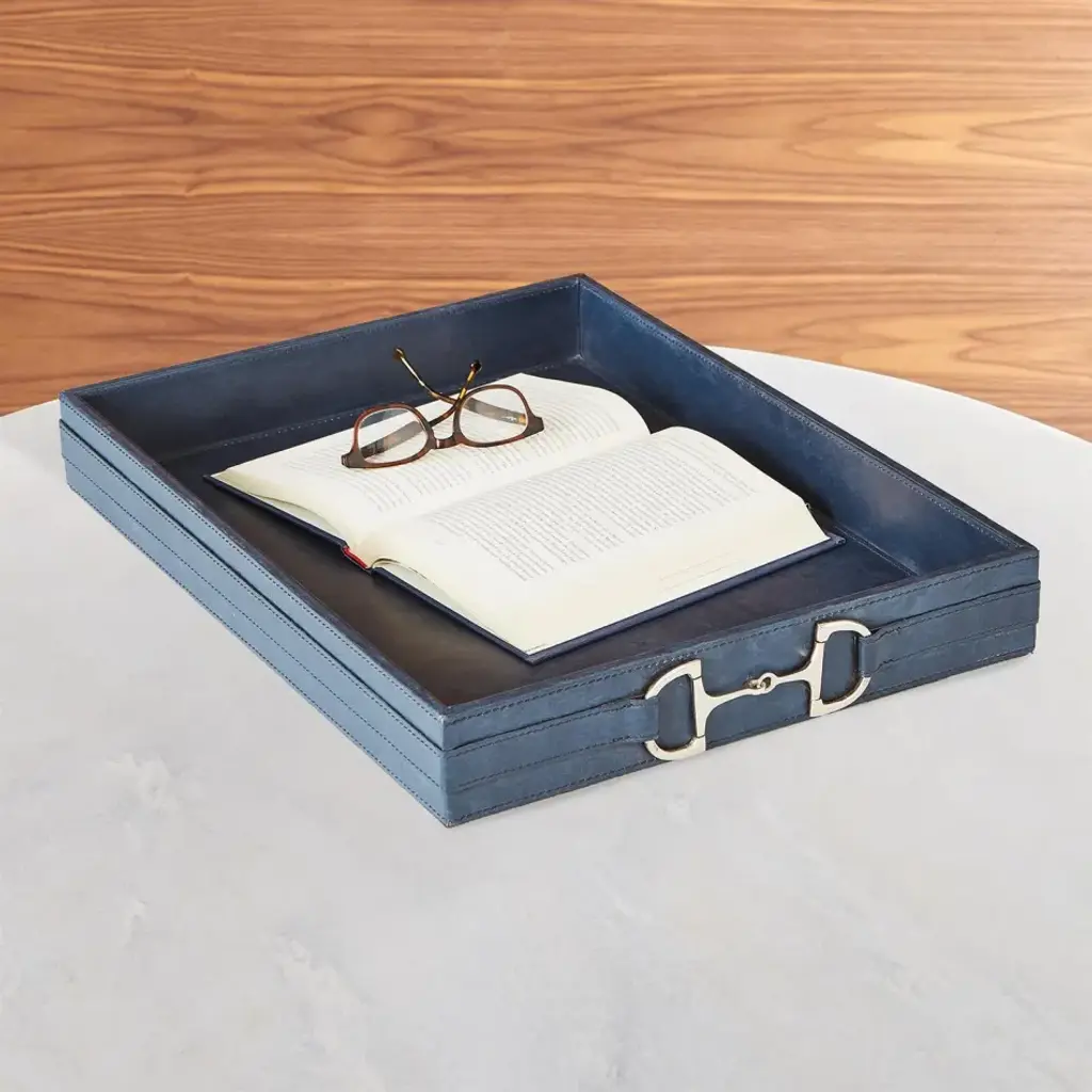 Stirrup Detail tray is covered in hand stained washed blue leather and detailed with tonal bands and nickel horse bits. From a fashion forward perspective, Global Views offers accessories, furniture, statement lighting, and an assortment of rugs and mirrors to add beauty and joy to your home.