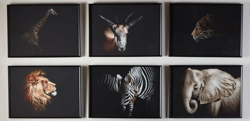 High-definition photography that utilizes chiaroscuro, the artistic contrast of light and dark, adds breathtaking dimension to African wildlife. Hang these pieces in a series, or choose your favorite from six stunning animals to turn any wall into a captivating focal point.