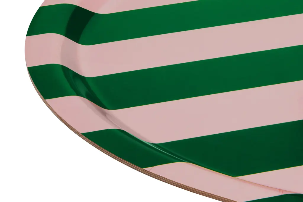 Every supporting act needs to work hard. The Stripe Tray by pattern maestro and long-time Hem collaborator Arthur Arbesser is just such a household tool. The Stripe Tray is made using a traditional technique in Southern Sweden, where layers of birch veneer and a printed paper motif are molded together using heat and pressure. A laminated melamine surface means that the Stripe Tray is as resilient as it is attractive. Much more than a merely functional kitchen object, whether casually lent against a work surface, stacked upon a countertop or in use safely delivering drinks or dinner to their destination, the Stripe Trays bring undiluted color and graphic impact wherever they go.