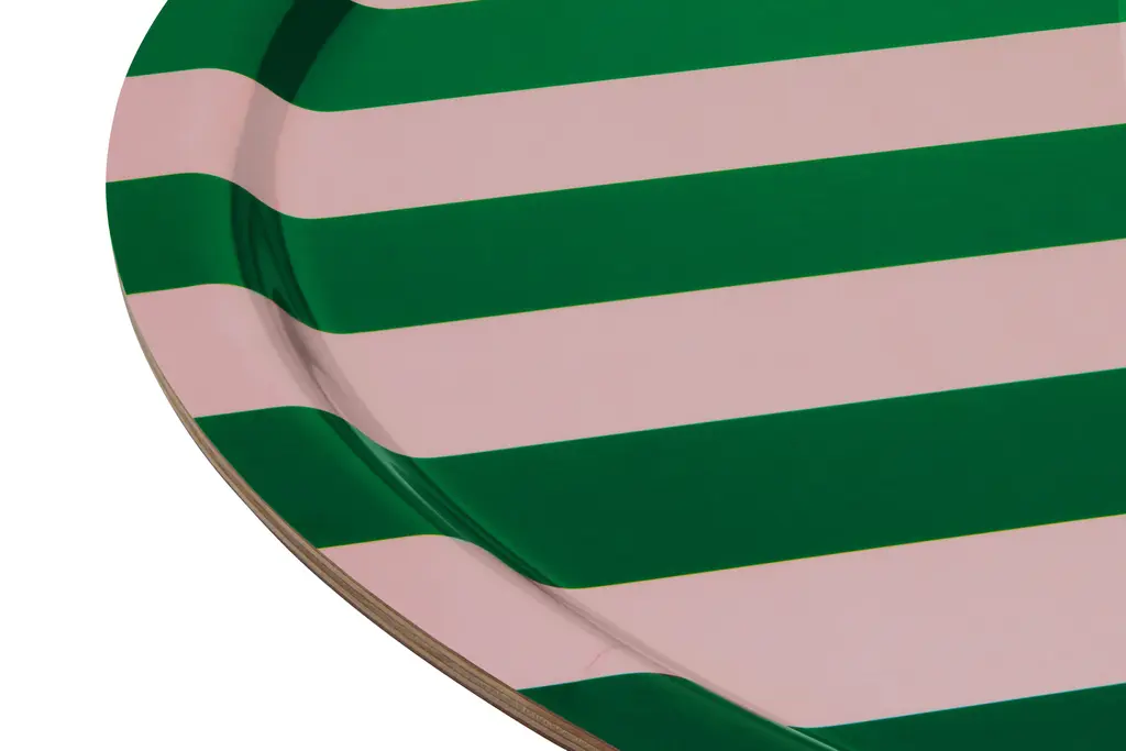 Every supporting act needs to work hard. The Stripe Tray by pattern maestro and long-time Hem collaborator Arthur Arbesser is just such a household tool. The Stripe Tray is made using a traditional technique in Southern Sweden, where layers of birch veneer and a printed paper motif are molded together using heat and pressure. A laminated melamine surface means that the Stripe Tray is as resilient as it is attractive. Much more than a merely functional kitchen object, whether casually lent against a work surface, stacked upon a countertop or in use safely delivering drinks or dinner to their destination, the Stripe Trays bring undiluted color and graphic impact wherever they go.