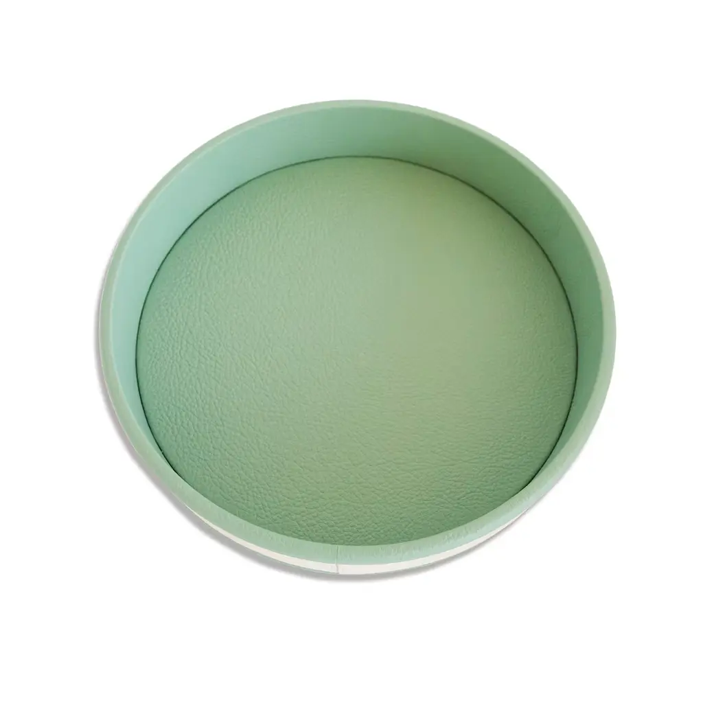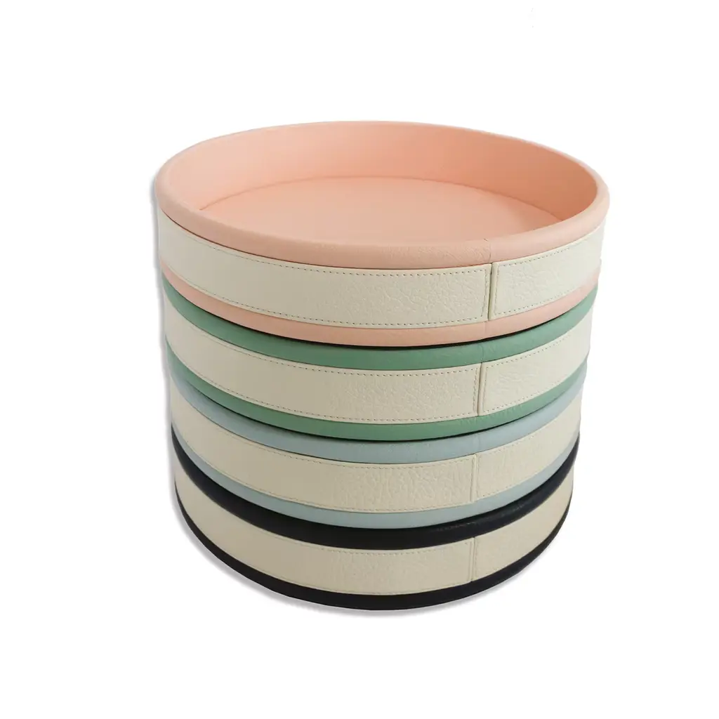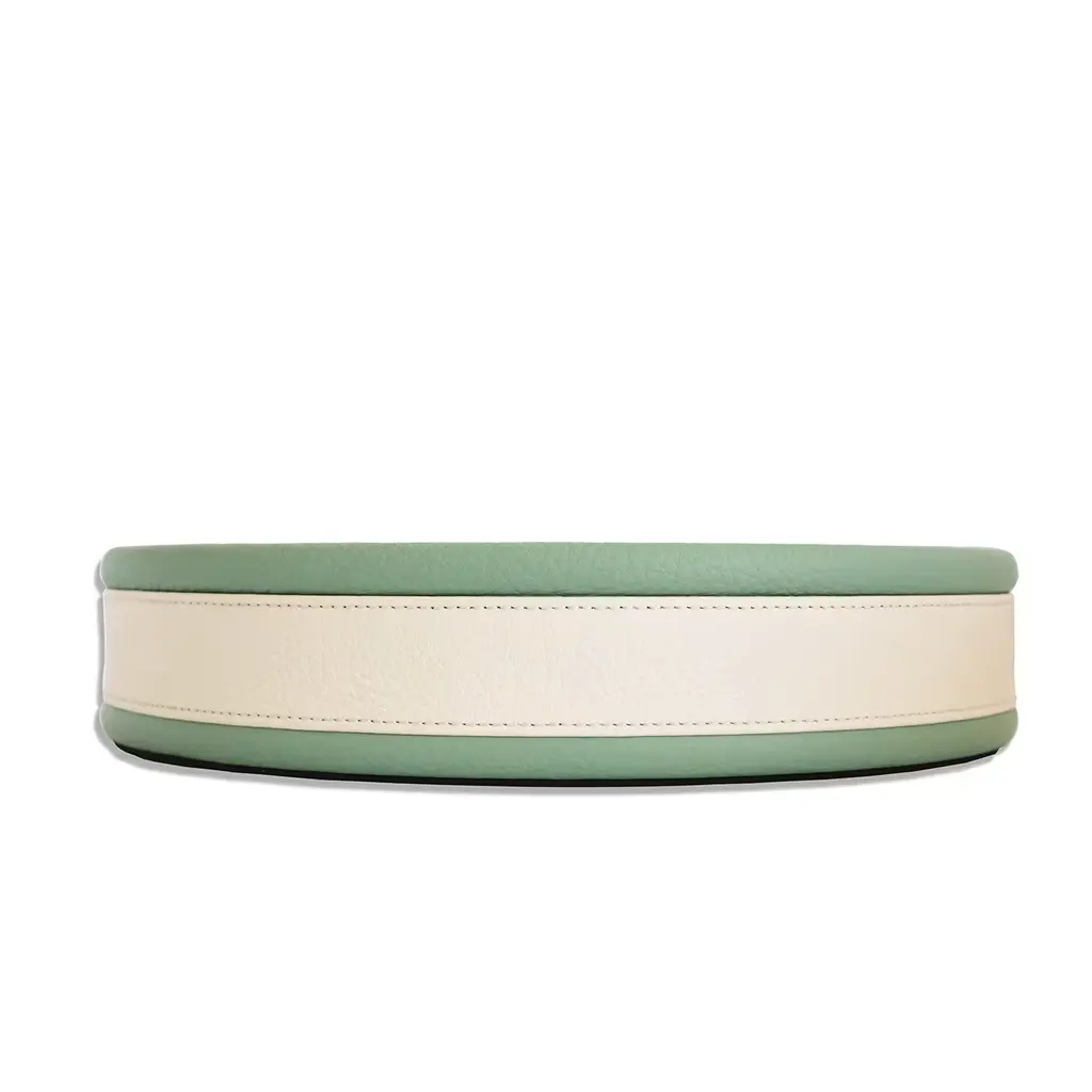 This stunning green-and-white tray combines a charming vintage flair with a sophisticated contemporary character. Perfect to adorn a modern decor, it is handcrafted and beautifully dressed in a soft and fine full-grain leather upholstery. Available in six different color combinations, please check the Artemest catalog for details.