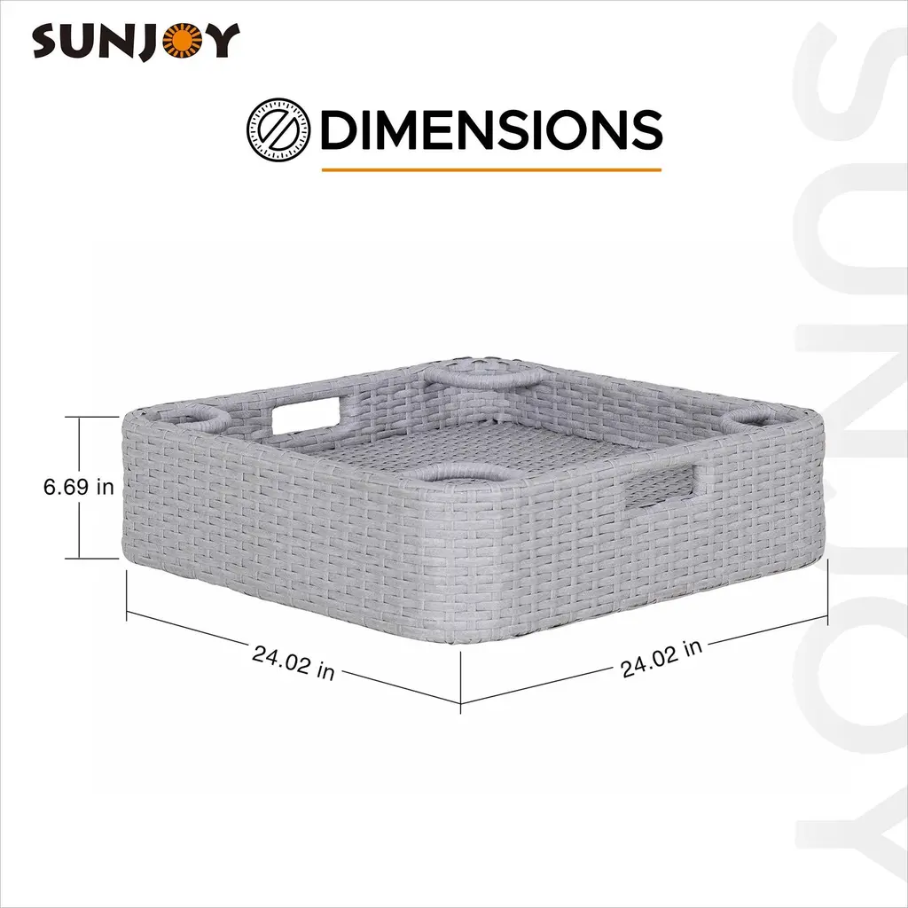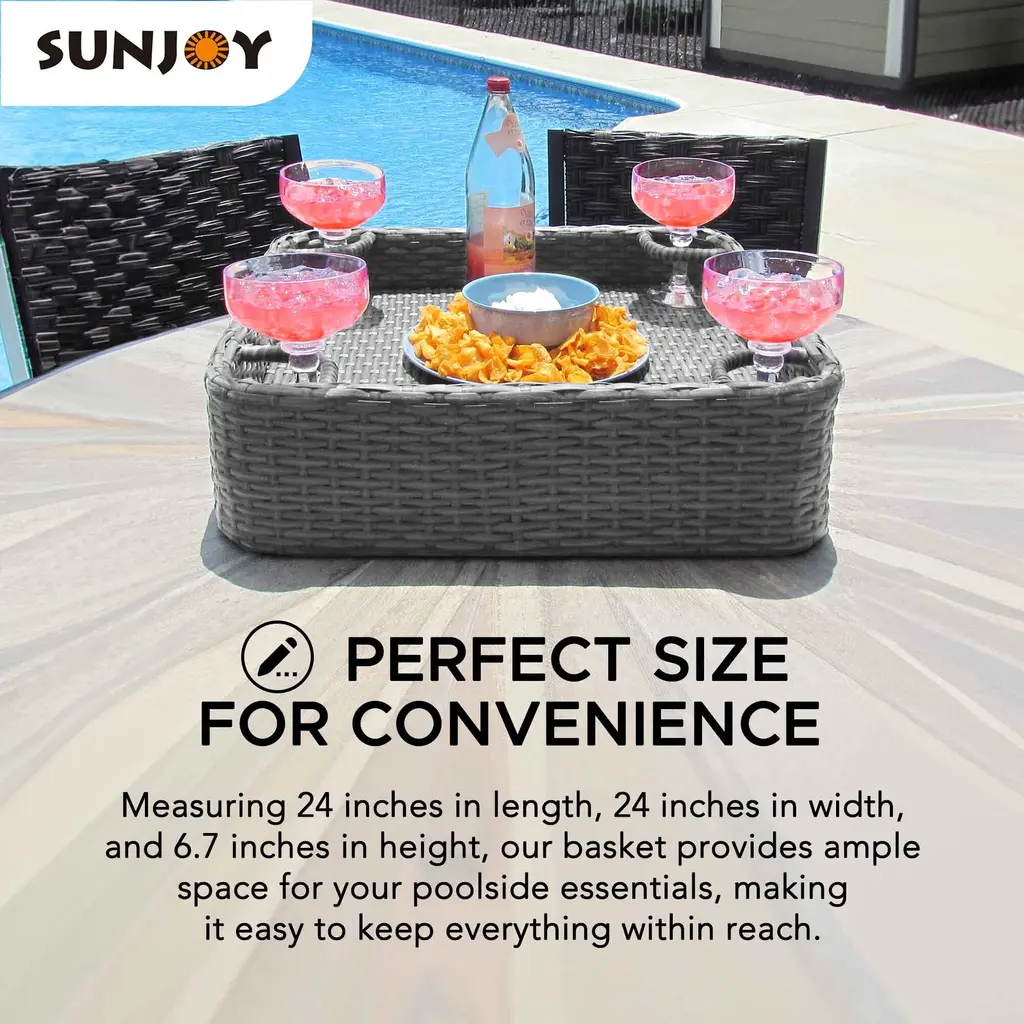 Elevate your poolside experience with the SummerCove 36” x 24” grey floating pool tray and impress your party guests with its unique design. Crafted with an aluminum frame to prevent rusting, this tray guarantees uncompromising quality and long-lasting enjoyment. Its exquisite handmade craftsmanship offers an environmentally friendly and beautiful design that won't fade in the sun. No more flimsy inflatable trays—our premium floating tray features impeccable design and durability, carefully lined with custom foam for smooth weight handling and perfect balance. Plus, it's waterproof for long-lasting performance. Measuring 36 x 24 inches, this tray provides ample space for drinks and appetizers during pool or lake parties. It's not just a tray; it's a must-have accessory to transform your backyard pool into a luxurious resort. Give yourself or someone you love the gift of unforgettable poolside experiences with this exceptional accessory. ● Uncompromising Quality Guaranteed: Crafted with an aluminum frame to prevent rusting and durable PE rattan that is weather resistant. Our products are built to last and ensure long-lasting enjoyment. ● Exquisite Handmade Craftsmanship: Our baskets are carefully and skillfully handwoven from high-quality PE rattan to create a beautiful design that won't fade in the sun; these non-toxic, environmentally friendly trays are made to impress and endure. ● Impeccable Design & Durability: Say goodbye to flimsy inflatable pool trays; our wicker floating tray boasts a meticulously designed structure, lined with custom foam for smooth weight handling and perfect balance while ensuring long-lasting performance. ● Perfect Size for Convenience: Measuring 36 inches in length, 24 inches in width, and 6.7 inches in height, our basket provides ample space for your poolside essentials, making it easy to keep everything within reach. ● Transform Your Backyard Pool into a Luxurious Resort: Elevate your poolside experience with this cool pool accessory, specially designed for your entertainment needs. Enjoy your food and drinks in style!