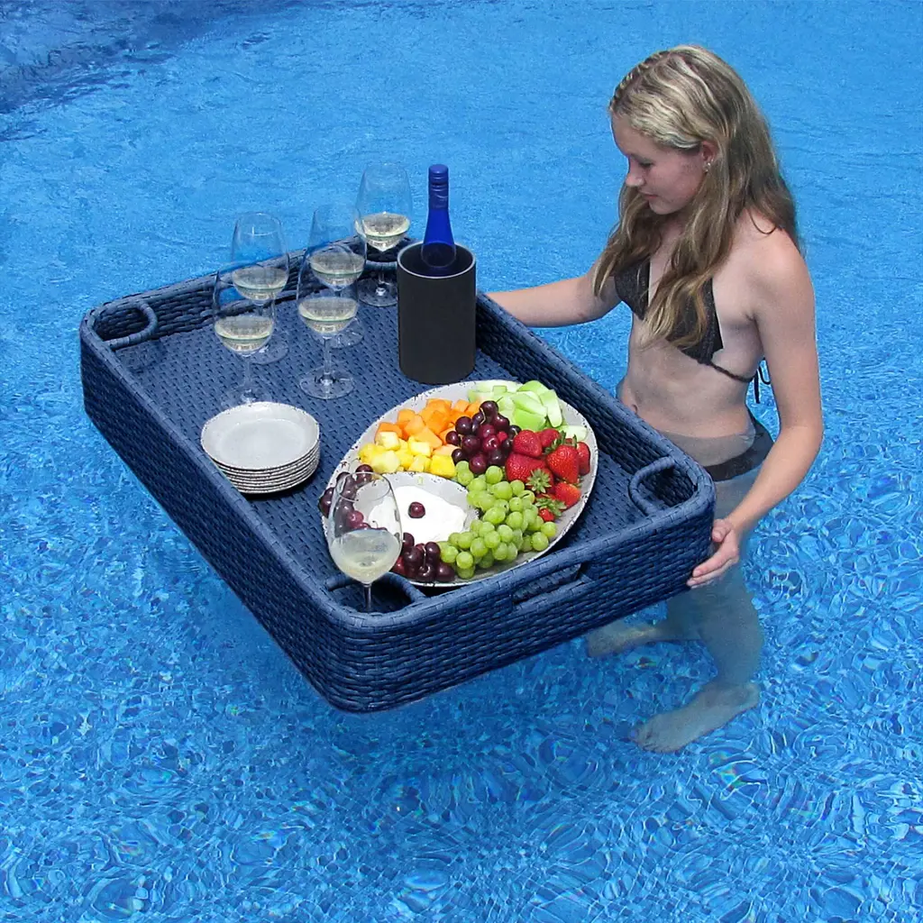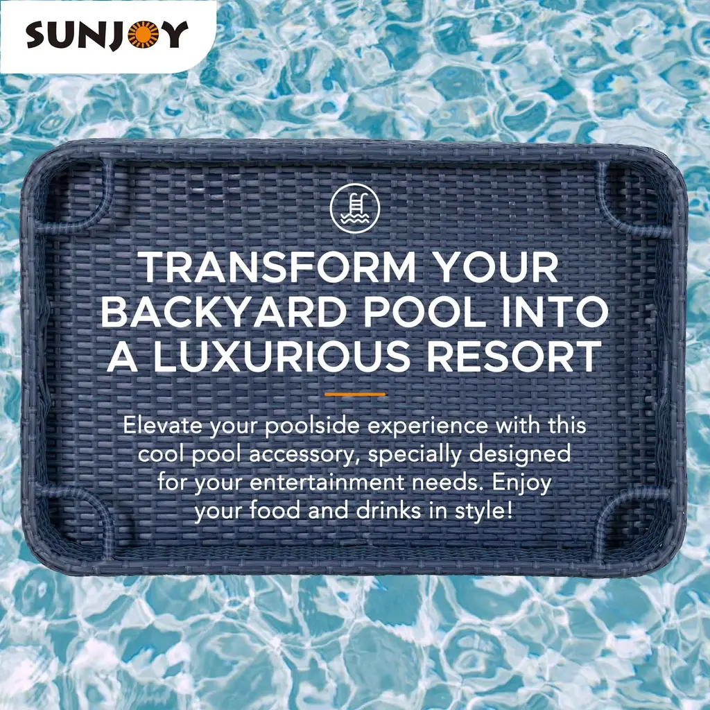 Elevate your poolside experience with the SummerCove 36” x 24” grey floating pool tray and impress your party guests with its unique design. Crafted with an aluminum frame to prevent rusting, this tray guarantees uncompromising quality and long-lasting enjoyment. Its exquisite handmade craftsmanship offers an environmentally friendly and beautiful design that won't fade in the sun. No more flimsy inflatable trays—our premium floating tray features impeccable design and durability, carefully lined with custom foam for smooth weight handling and perfect balance. Plus, it's waterproof for long-lasting performance. Measuring 36 x 24 inches, this tray provides ample space for drinks and appetizers during pool or lake parties. It's not just a tray; it's a must-have accessory to transform your backyard pool into a luxurious resort. Give yourself or someone you love the gift of unforgettable poolside experiences with this exceptional accessory. ● Uncompromising Quality Guaranteed: Crafted with an aluminum frame to prevent rusting and durable PE rattan that is weather resistant. Our products are built to last and ensure long-lasting enjoyment. ● Exquisite Handmade Craftsmanship: Our baskets are carefully and skillfully handwoven from high-quality PE rattan to create a beautiful design that won't fade in the sun; these non-toxic, environmentally friendly trays are made to impress and endure. ● Impeccable Design & Durability: Say goodbye to flimsy inflatable pool trays; our wicker floating tray boasts a meticulously designed structure, lined with custom foam for smooth weight handling and perfect balance while ensuring long-lasting performance. ● Perfect Size for Convenience: Measuring 36 inches in length, 24 inches in width, and 6.7 inches in height, our basket provides ample space for your poolside essentials, making it easy to keep everything within reach. ● Transform Your Backyard Pool into a Luxurious Resort: Elevate your poolside experience with this cool pool accessory, specially designed for your entertainment needs. Enjoy your food and drinks in style!