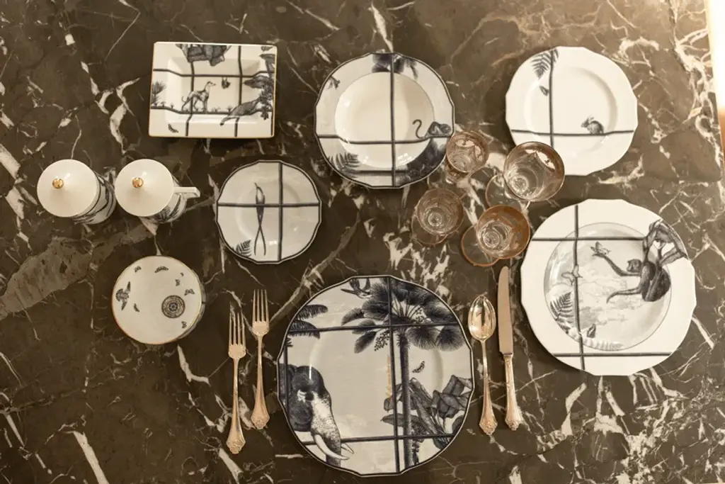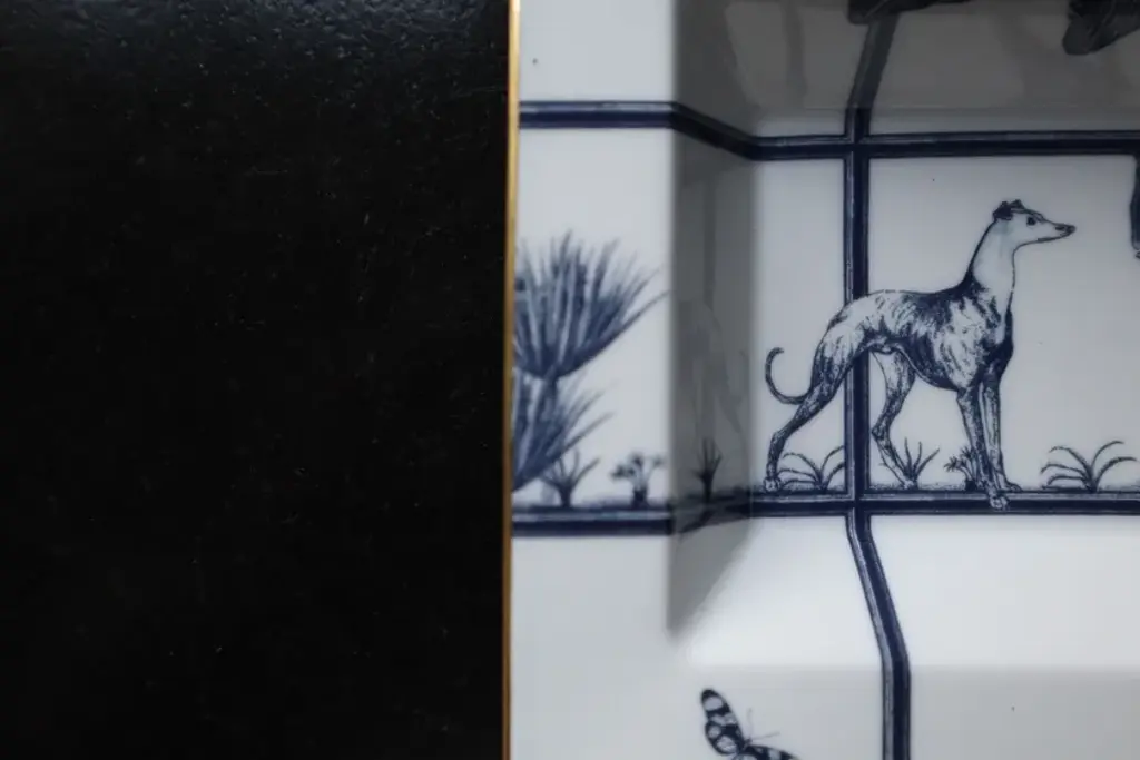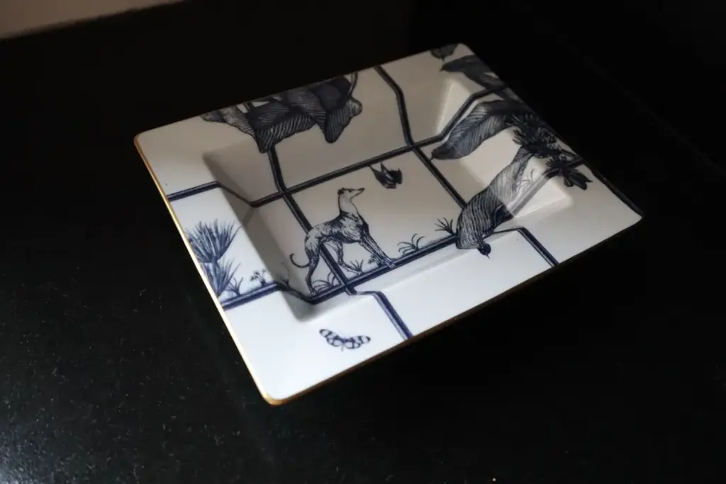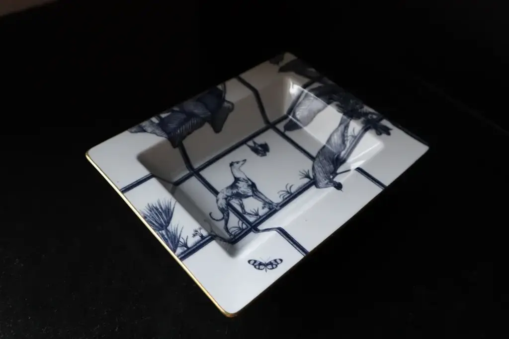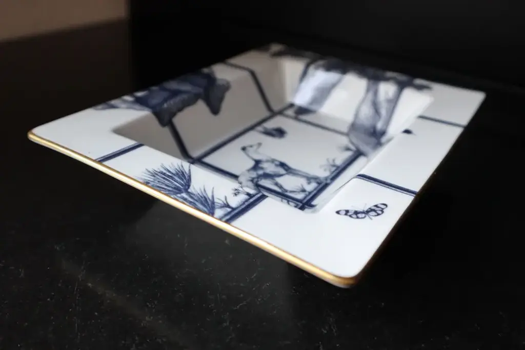 Pin tray with "La Gabbia" decoration and bright gold details.