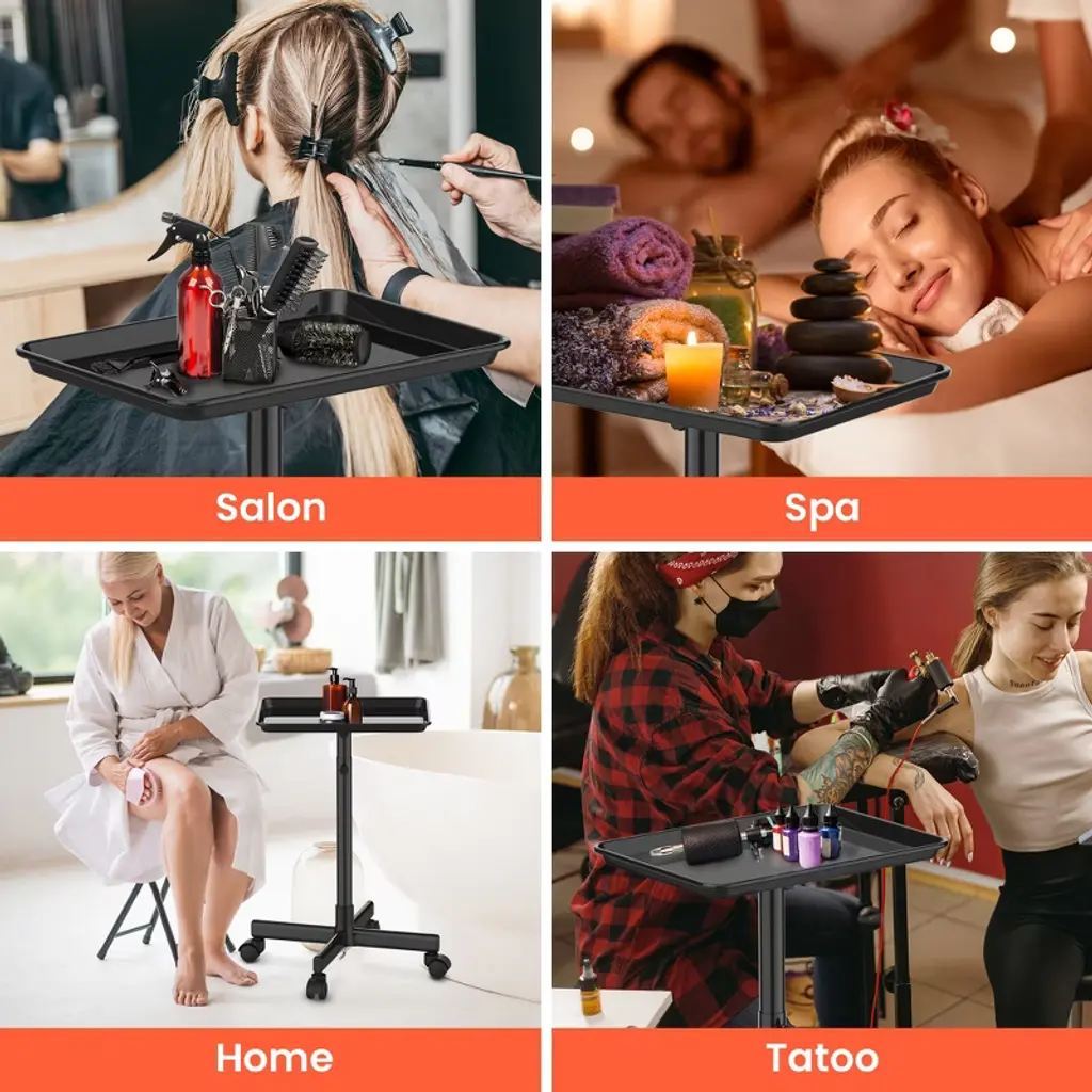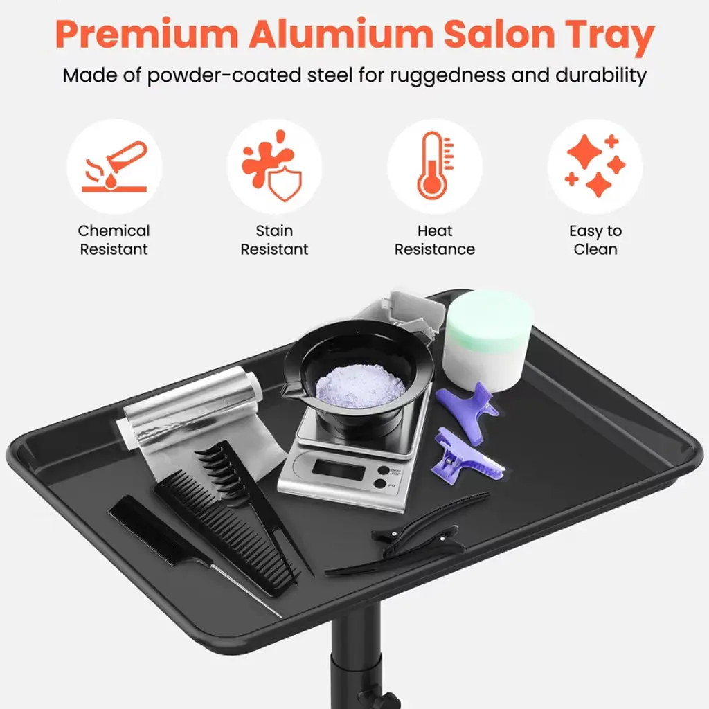 Tasalon Aluminum Salon Tray On Wheels - Black