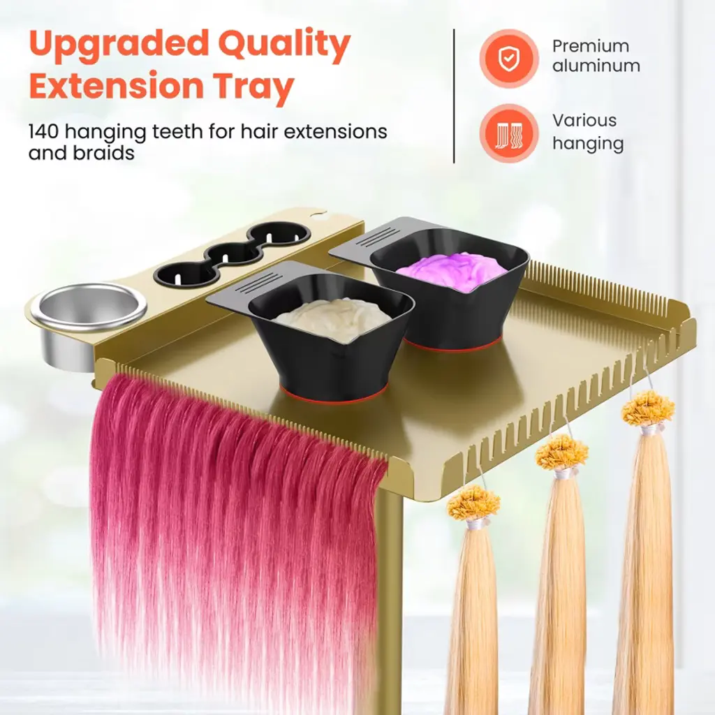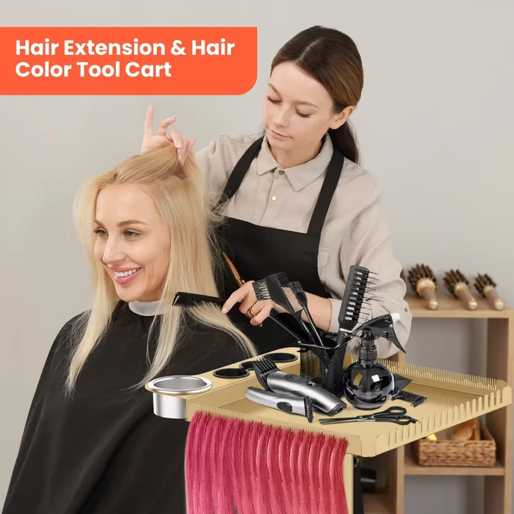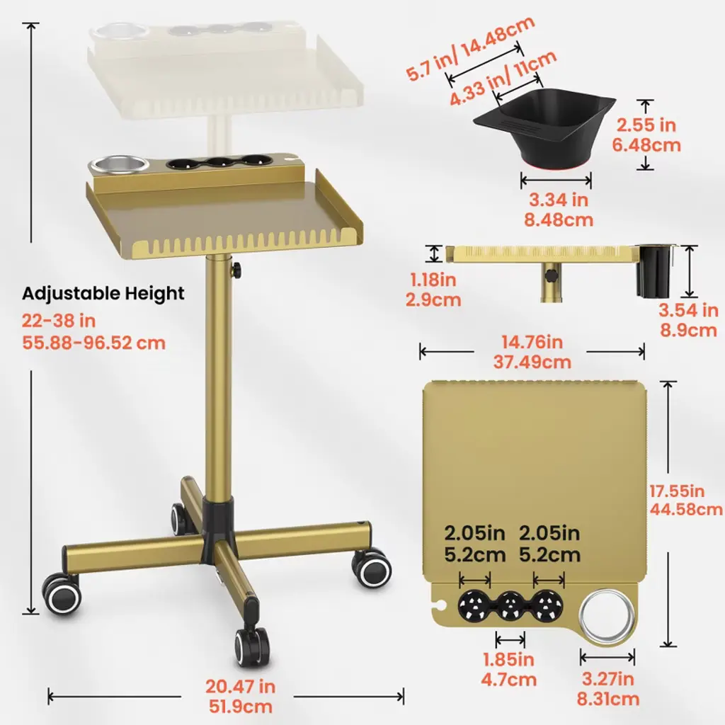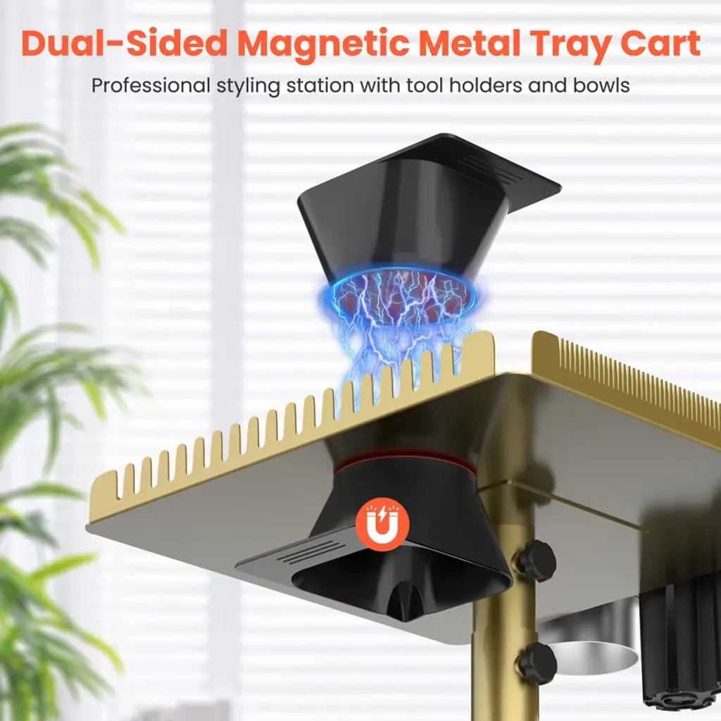 Tasalon Professional Hair Styling Station Cart, Rolling Salon Tray With Magnetic Bowls, Tool Holders And Dryer Mount, Gold