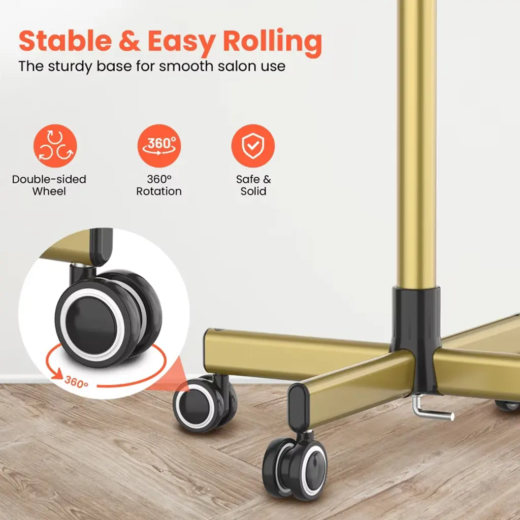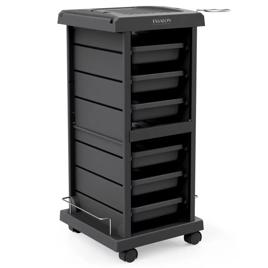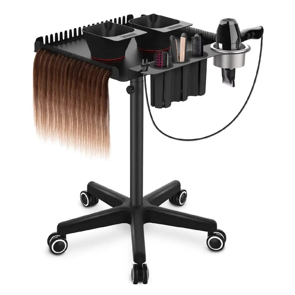Enhance your salon’s mobility and efficiency with the TASALON Metal Rolling Salon Tray! Designed with smooth-rolling wheels, this portable tray moves effortlessly around your workspace, giving you easy access to tools wherever you need them. It comes equipped with 2 strong magnetic bowls that securely hold your products in place, preventing spills and keeping everything within reach. Durable, practical, and built for professional use, this rolling tray helps you stay organized and deliver seamless services with ease. Ideal for busy stylists who value flexibility, order, and convenience! What You Get: Hairstylist cart x 1, Hair dryer holder x 1, Curling iron holder x 1, Magnetic coloring bowl x 2