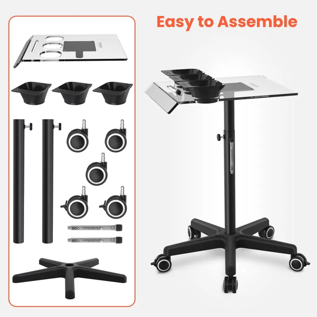 Tasalon Ultimate Remarkable Color Station Salon Tray On Wheels, Tray Cart With Marker Pen & Bowls