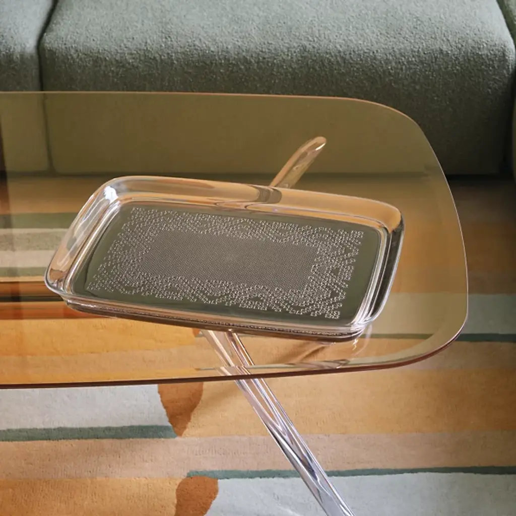 The Teatime Tray from Kartell combines Philippe Starck's fascination with traditional craftsmanship and cutting-edge materials. Delicate embroidered patterns are etched into recycled PMMA, creating the appearance of crocheted doilies frozen in high-tech polymer. The tray works beautifully for outdoor gatherings since the material won't crack or fade in sunlight. Hand-washing is recommended to preserve the intricate surface detailing that gives each tray its textile-like appearance. Whether you're serving afternoon tea or evening cocktails, this piece bridges generations of hospitality traditions while embracing tomorrow's sustainable design principles.