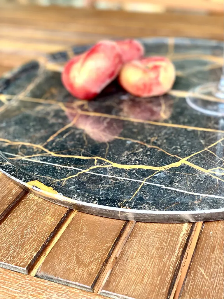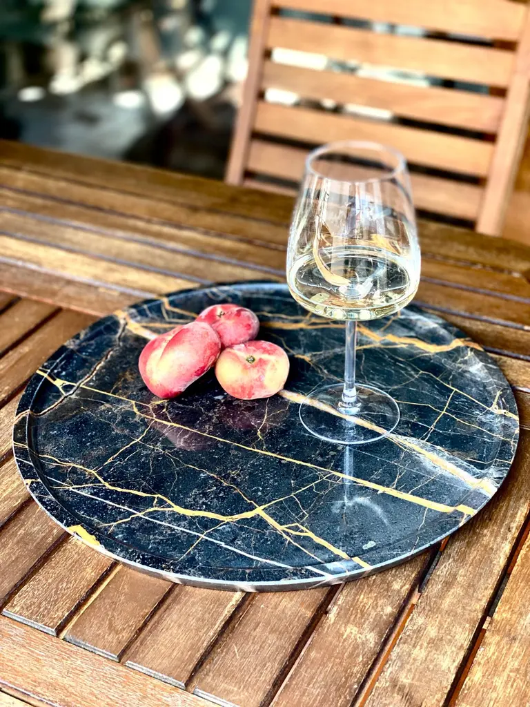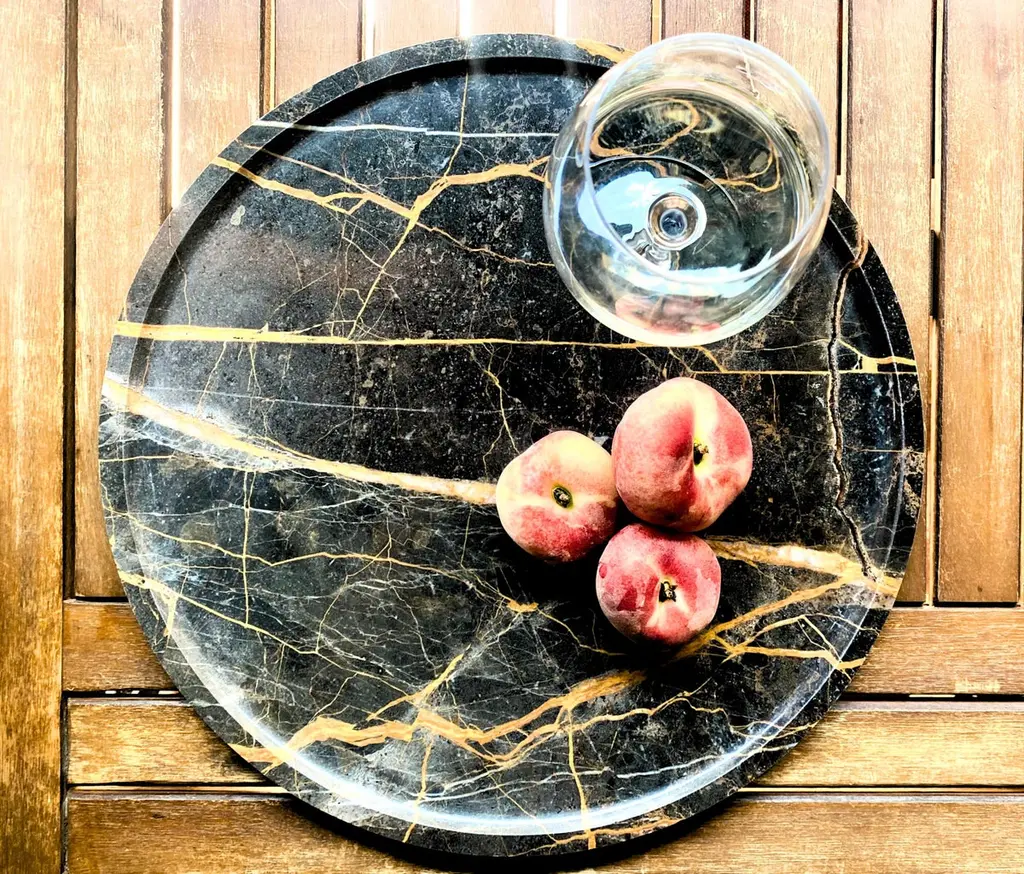 The Terra tray, made of Port Saint Laurent marble, can be used as a fantastic centerpiece to support a vase, or as a pocket emptier to place objects that are often scattered throughout the various rooms of our homes. Furthermore, you can also impress your guests by using it to present your dinner dishes.Proposed by us using Port Saint Laurent, Nero Marquina, Dark Emperador and Emperador Light, the Terra marble tray can be customized according to the customer's wishes. Furthermore, you can combine it with our other objects from the Tablewear collection to give personality and a unique style to your dining room.(Variations in color or slight imperfections are the result of the craftsmanship of this article and are not to be considered defects)