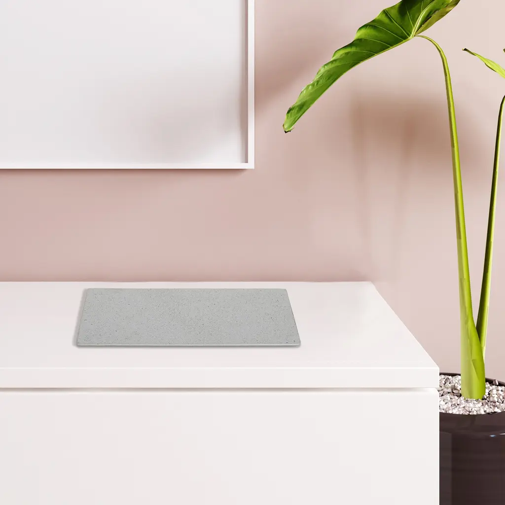 Featuring a stylish and elegant terrazzo design that enhances the visual appeal of your bathroom, this White Terrazzo Rectangle Tray can be used to place tumblers, soap dishes, and decorative items. You can also keep it on your entryway table to place car keys and other small items. Highly durable, the stone construction of the tray makes it withstand daily wear. Enhance the aesthetics of your space with this stylish stone tray.