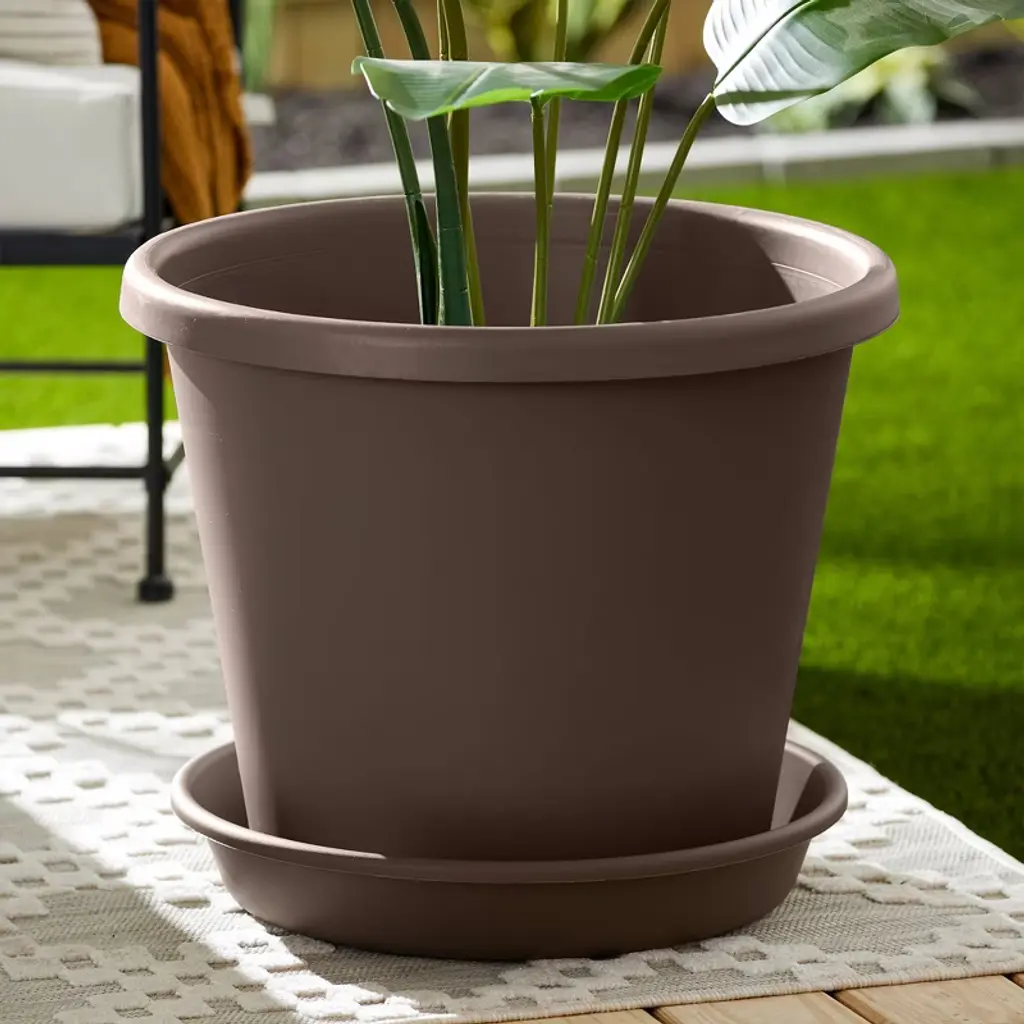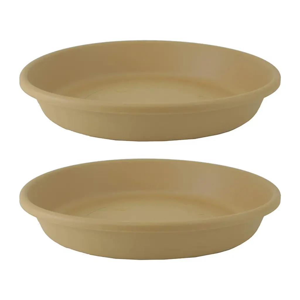 The Hc Companies Classic Plastic 21 Inch Round Plant Flower Pot Planter Deep Saucer Drip Tray, Fits 21 Inch Pot, Chocolate Brown (2 Pack)