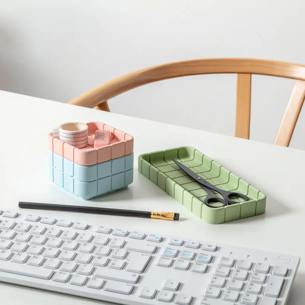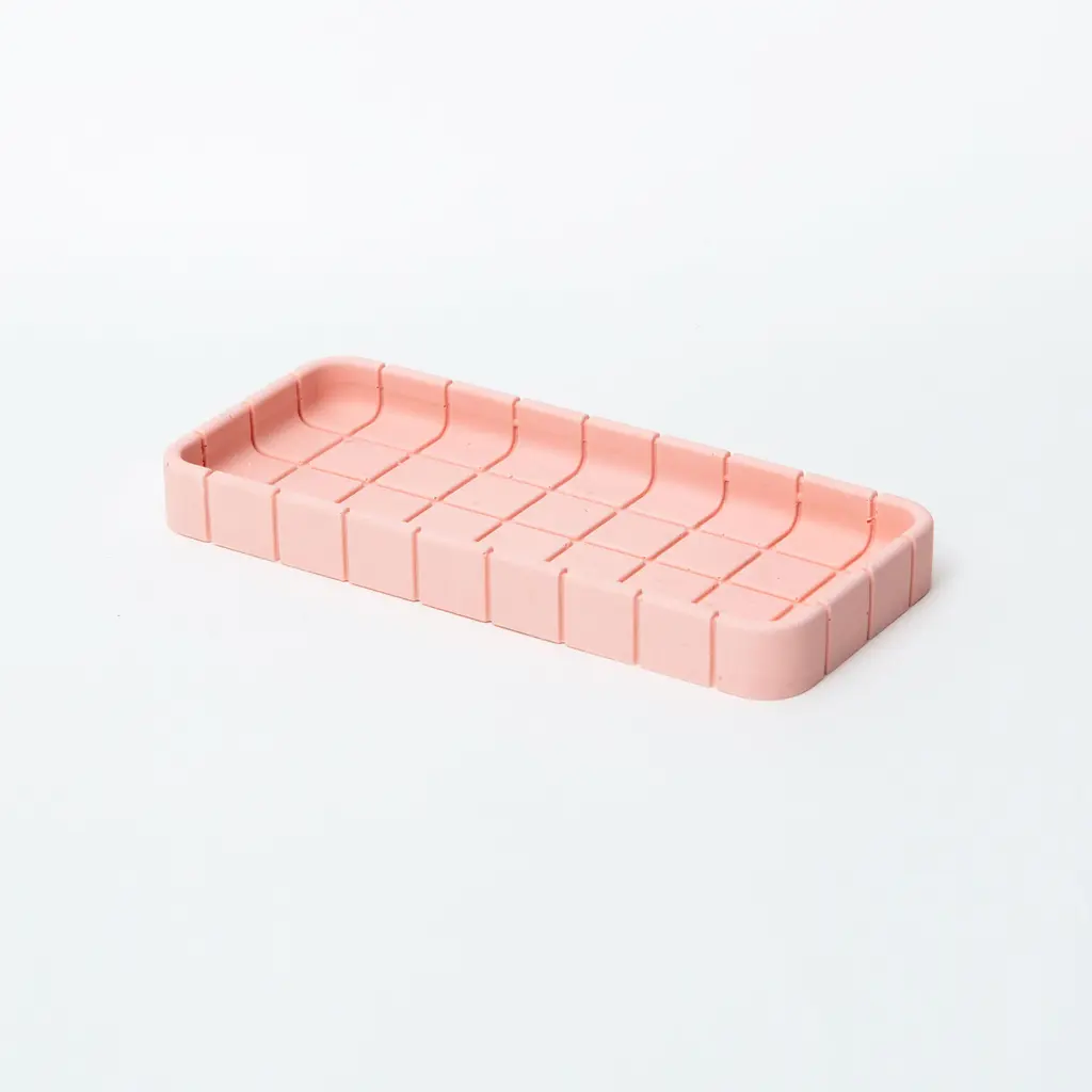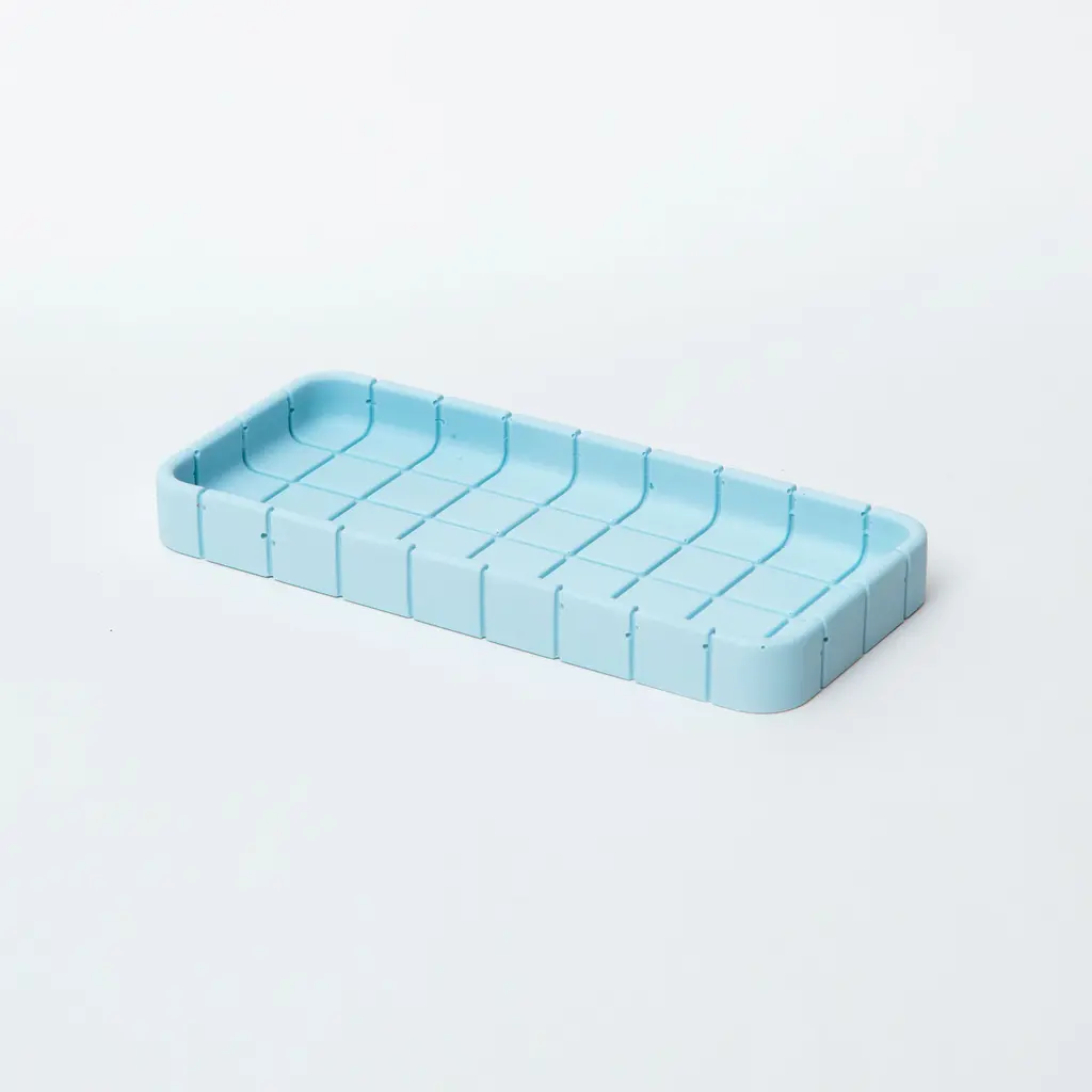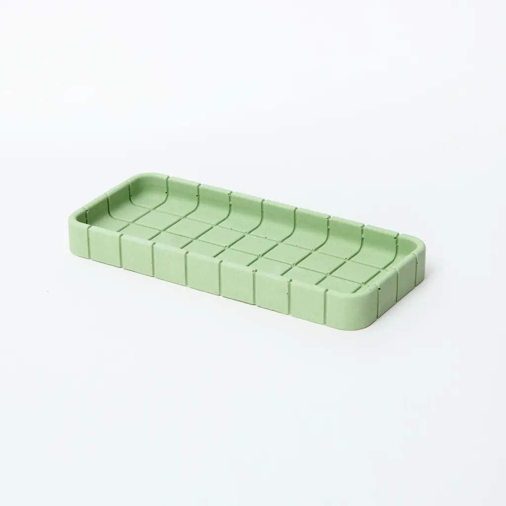 From the entryway to the bathroom or the bedroom, the Oblong Tray from Block Design’s Tile Collection can store, display and organize items with ease. This practical tray has an elongated shape, which makes it perfect for eyewear, jewelry, keys, and other small essentials, as well as bathroom accessories or grooming products. The design is also conveniently stackable. Made from eco-friendly, water-based Jesmonite, each tray has a tactile, stone-like texture and an Art Deco-inspired tile pattern. Great on its own or alongside other products from the same range, the Oblong Tray comes in a series of soft colors that reference US east coast landscapes.