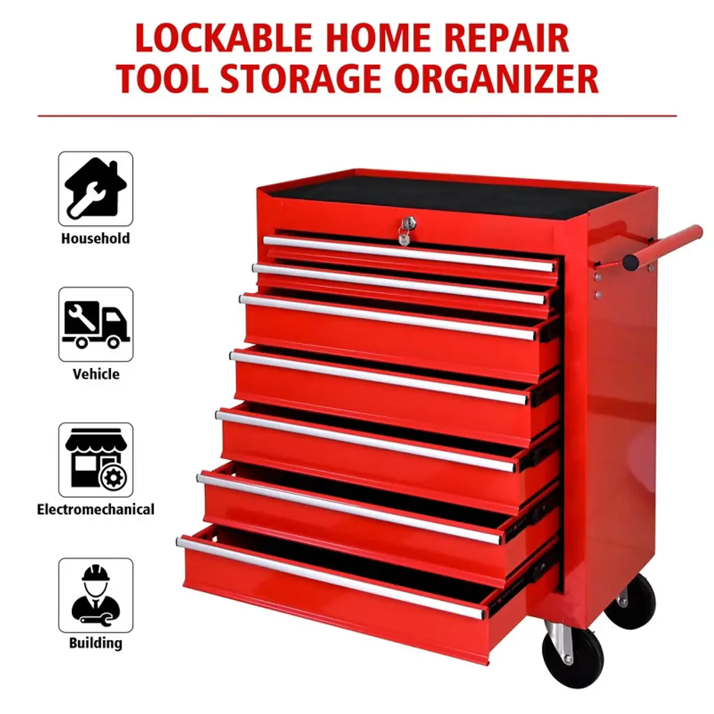 Tool Chest With 7 Drawers, Tool Cart With 7 Organizer Tray Divider Set & Wheels, Large Rolling Tool Box Organizer For Garage, Workshop