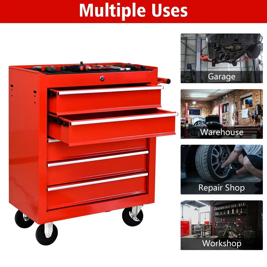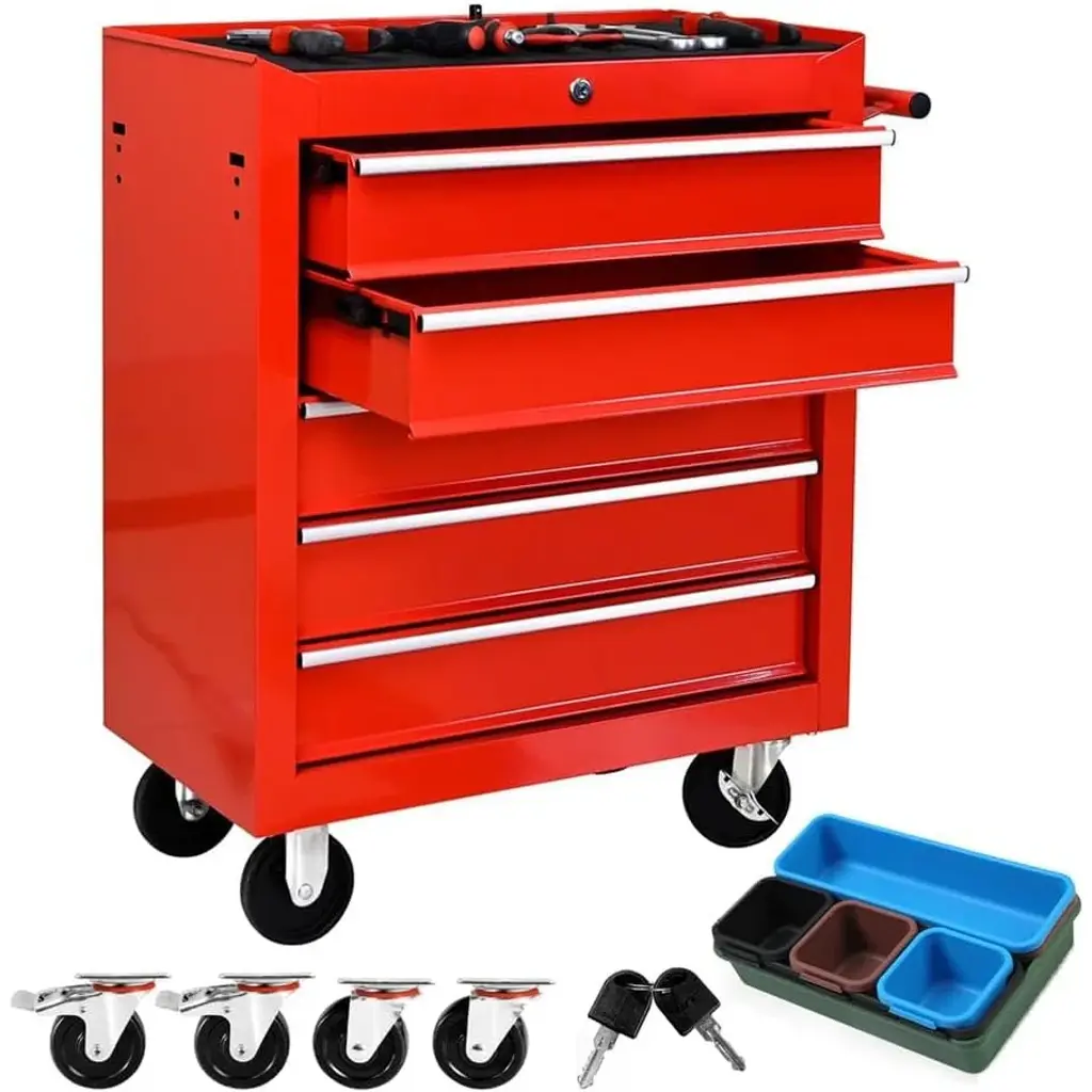 Tool Chest With Wheels,metal Locking Rolling Tool Box With Tool Organizer Trays For Tool Storage Organizer - Red