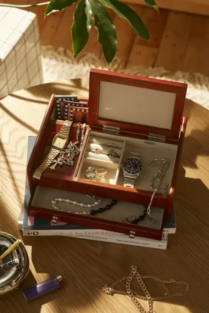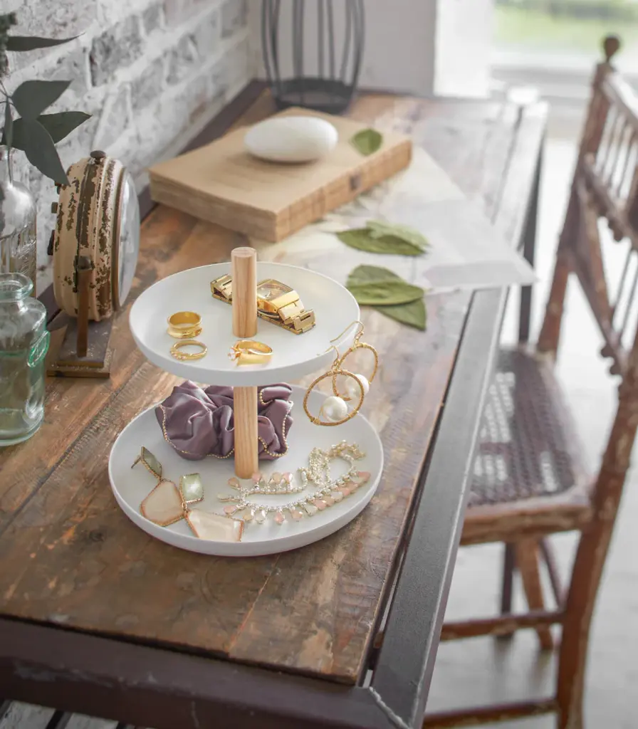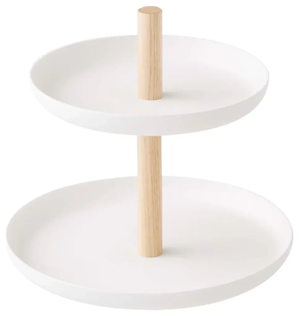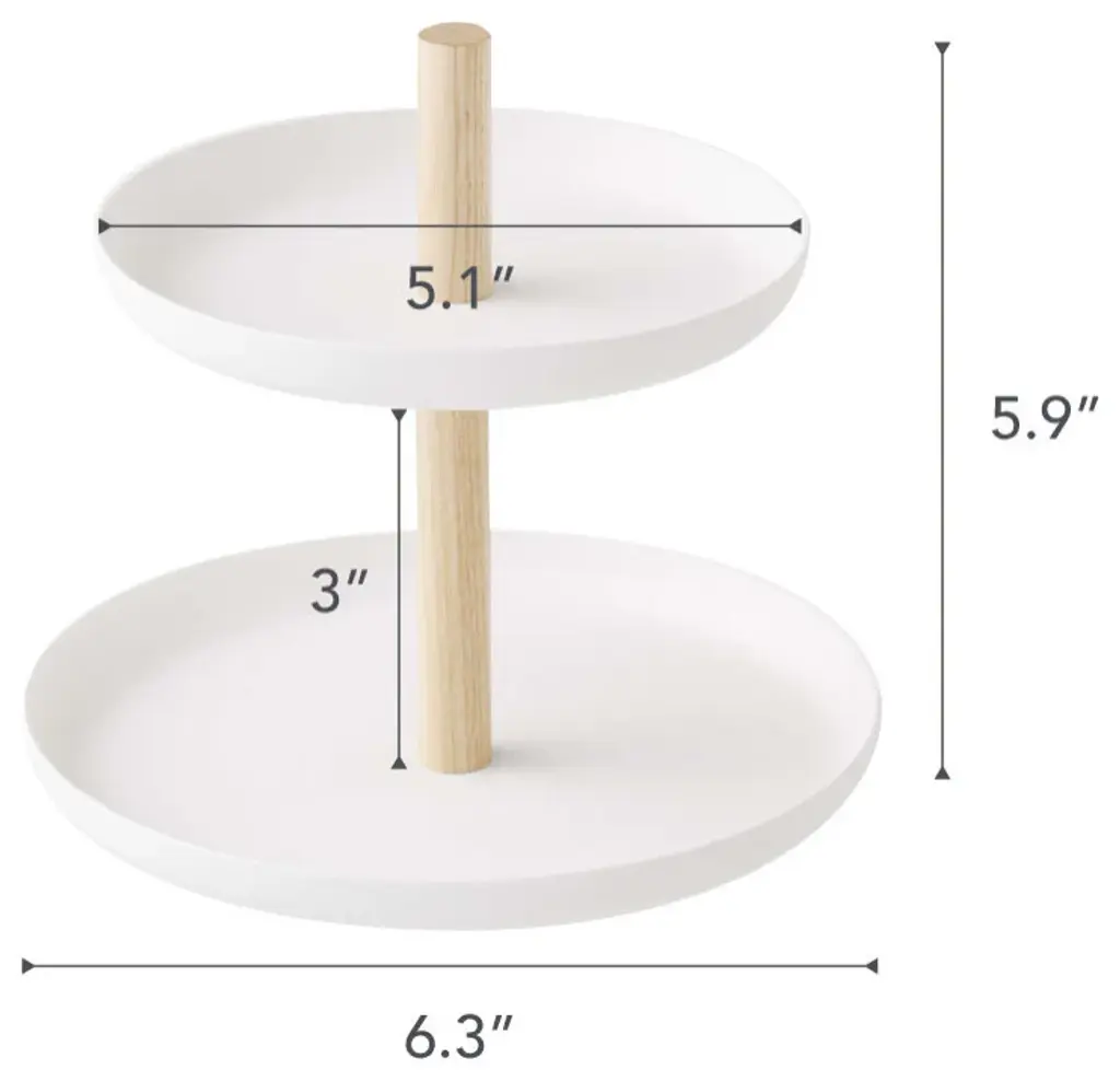 Compact and elegant and this double-tiered stand is the perfect place to keep accessories and other small items. [Details]Specifications:• Materials: Steel and Wood• Dimensions: L 6.3 x W 6.3 x H 5.9 inches• Product weight: 0.7 lb• Load-bearing weight: Trays: 4.4 lb• Load-bearing weight: Trays: 2kg• Assembly: Minimal• Designed in Japan