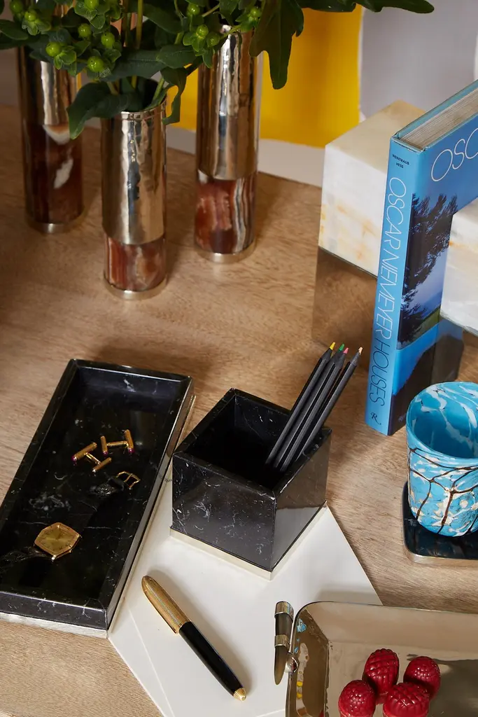 The immensity feeling at the shore of Traful Lake, the source of a river, is reflected in the design of the desk set made of alpaca and onyx. The alpaca recalls the moments when the lake reflects the sky and onyx, with its changing colors. In their conception, our objects carry this endless beauty. This family contains memo pads, pen holders, pencil cases and envelope or paper holders.Our pieces are made by hand. One of a kind.Natural onyx may vary in color.
