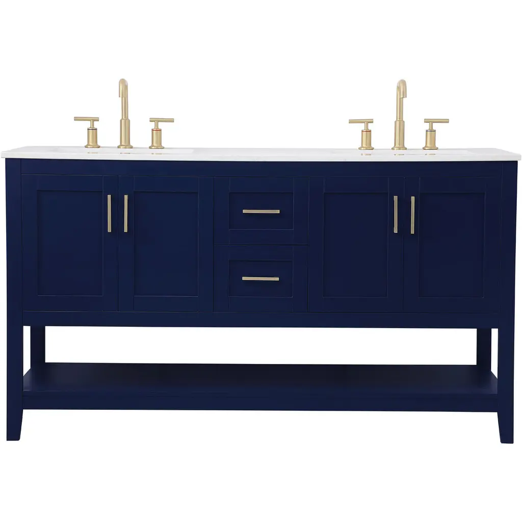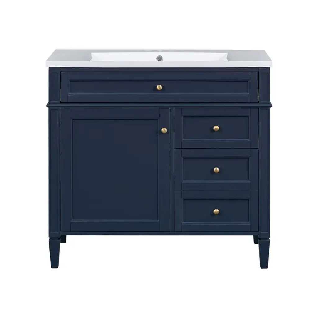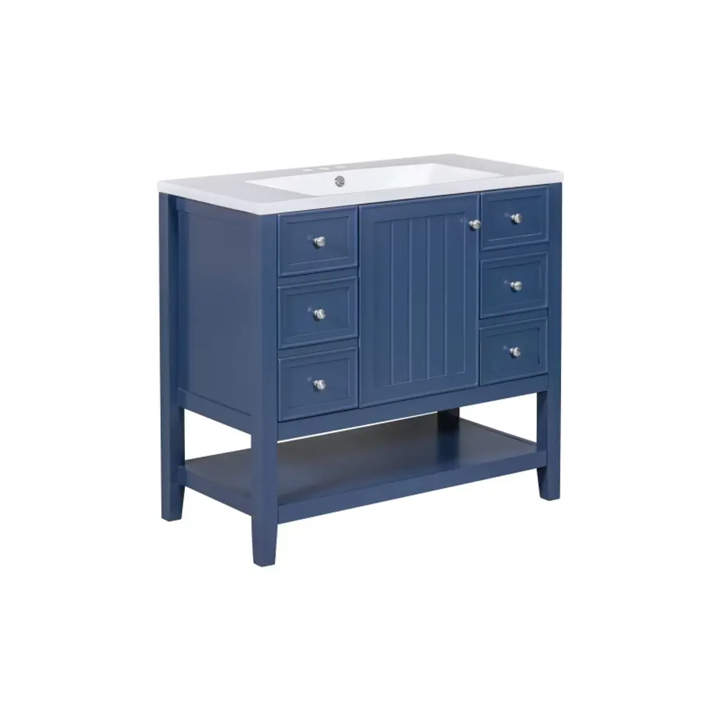 Tramull Blue Modern Bathroom Vanity Set With Sink Top, Mirror Storage Cabinet, 2 Drawers & Tip-out Tray, Soft-close Door