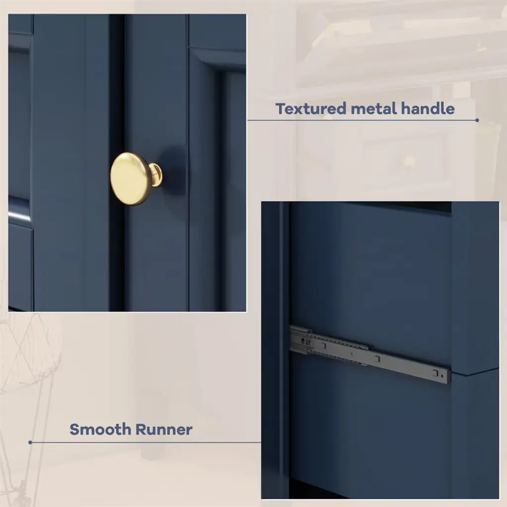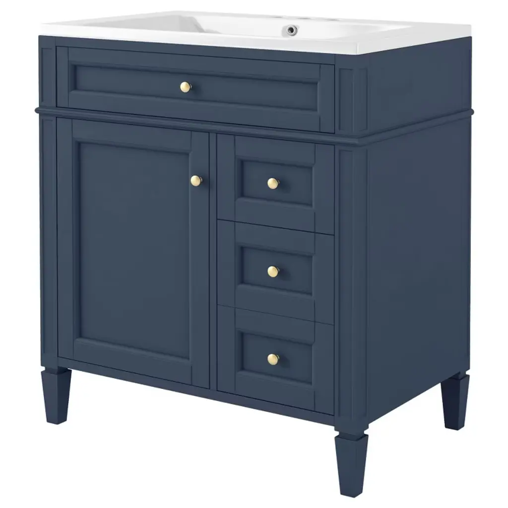 Tramull Dark Blue Modern Bathroom Vanity With Sink Top, 2 Drawers & Tip-out Tray, Storage Cabinet For Bathroom Decor, Easy Assembly