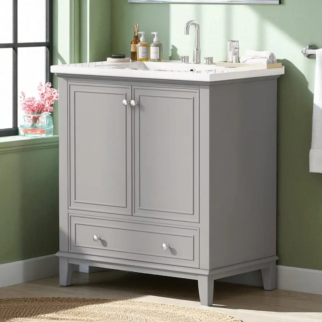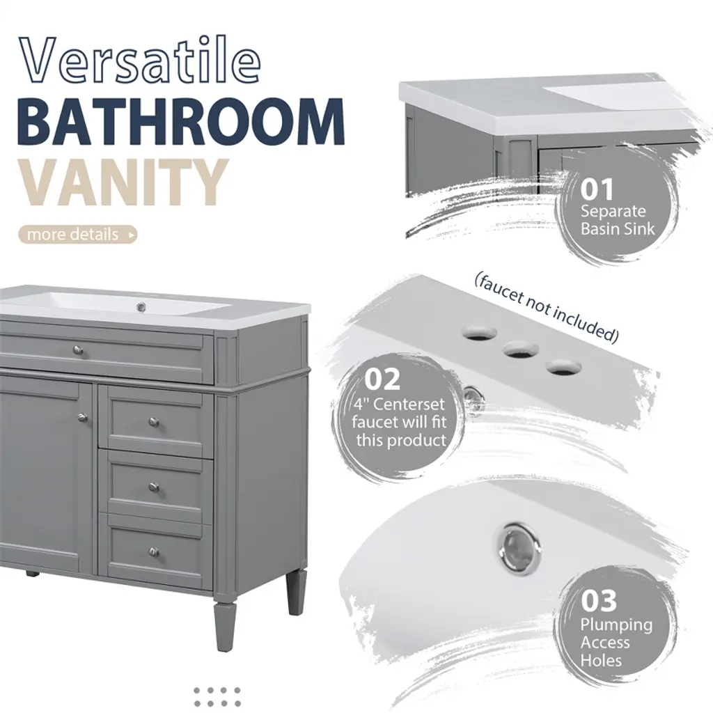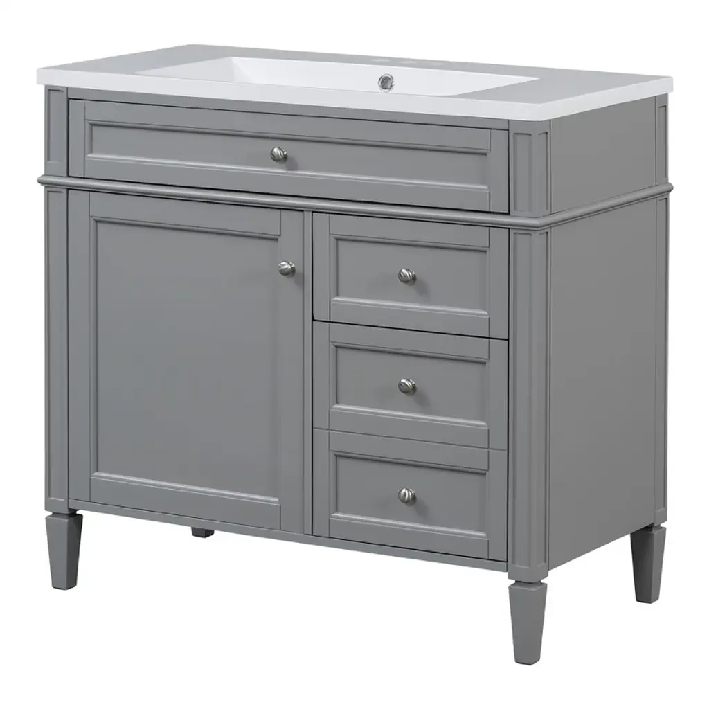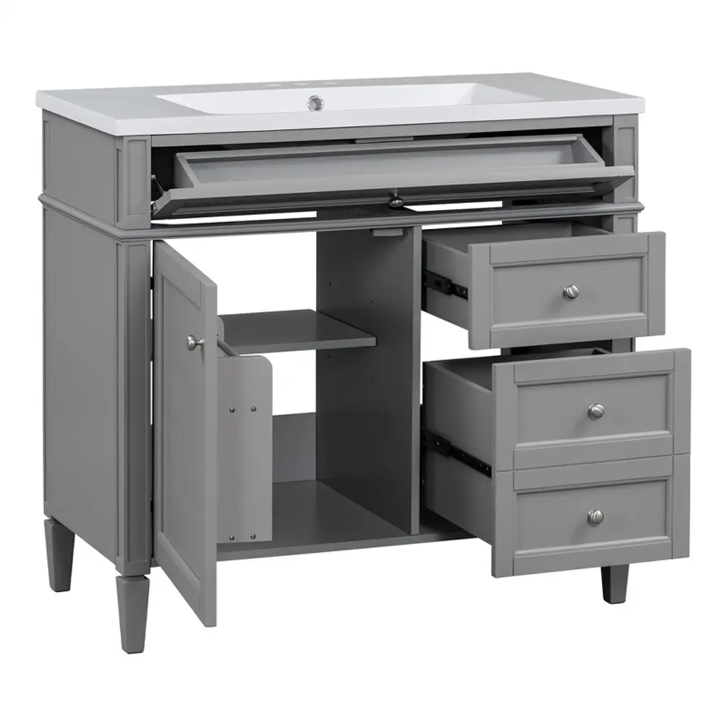 Tramull Gray Modern Bathroom Vanity Set With Sink Top, Mirror Storage Cabinet, 2 Drawers & Tip-out Tray, Soft-close Door