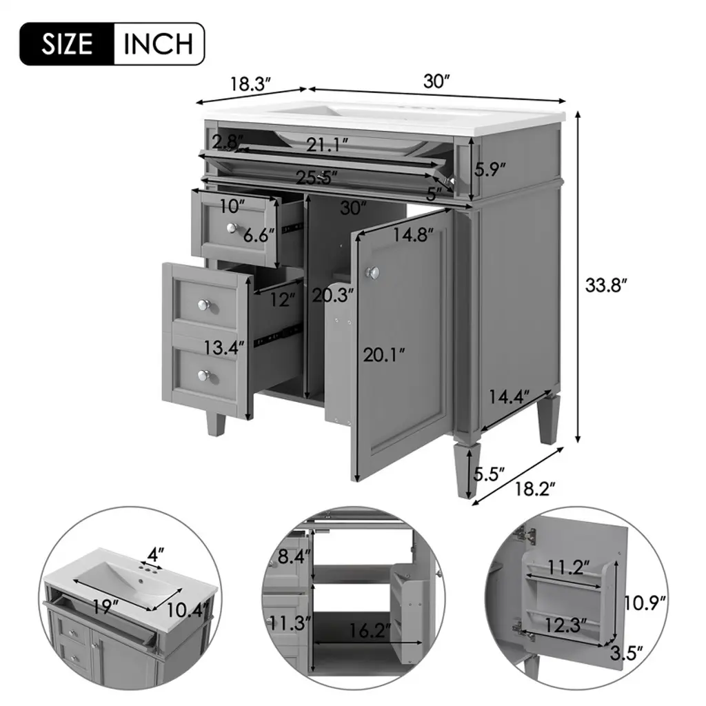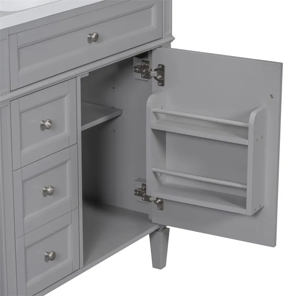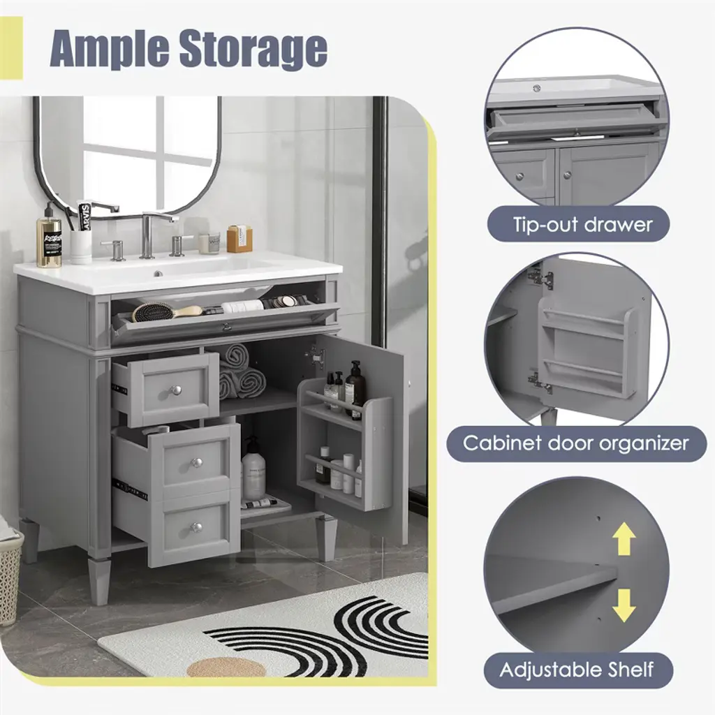 Tramull Gray Modern Bathroom Vanity With Sink Top, 2 Drawers & Tip-out Tray, Storage Cabinet For Bathroom Decor, Easy Assembly