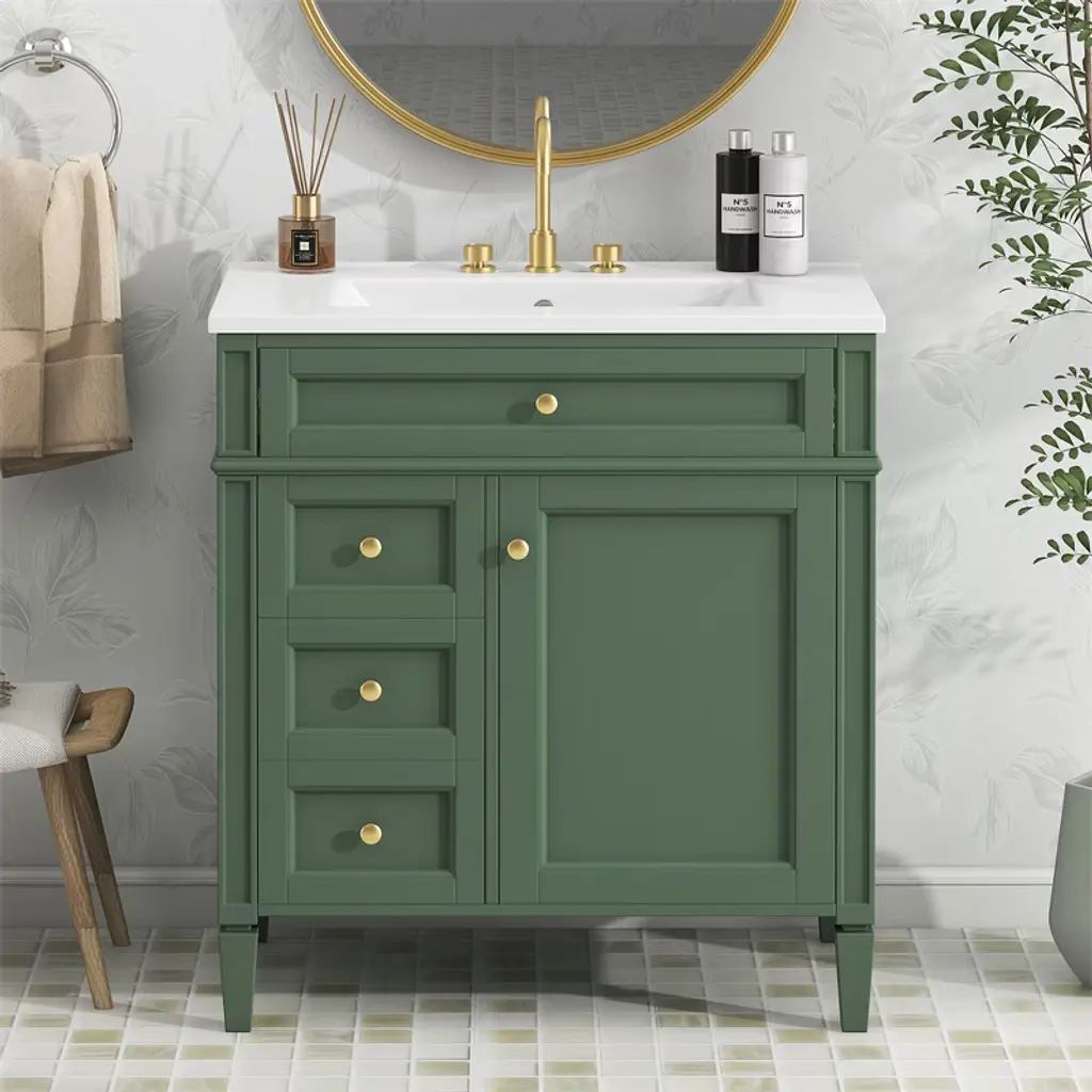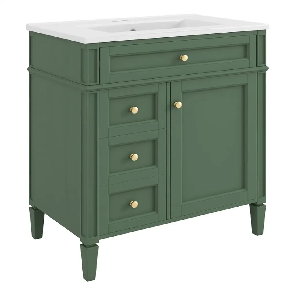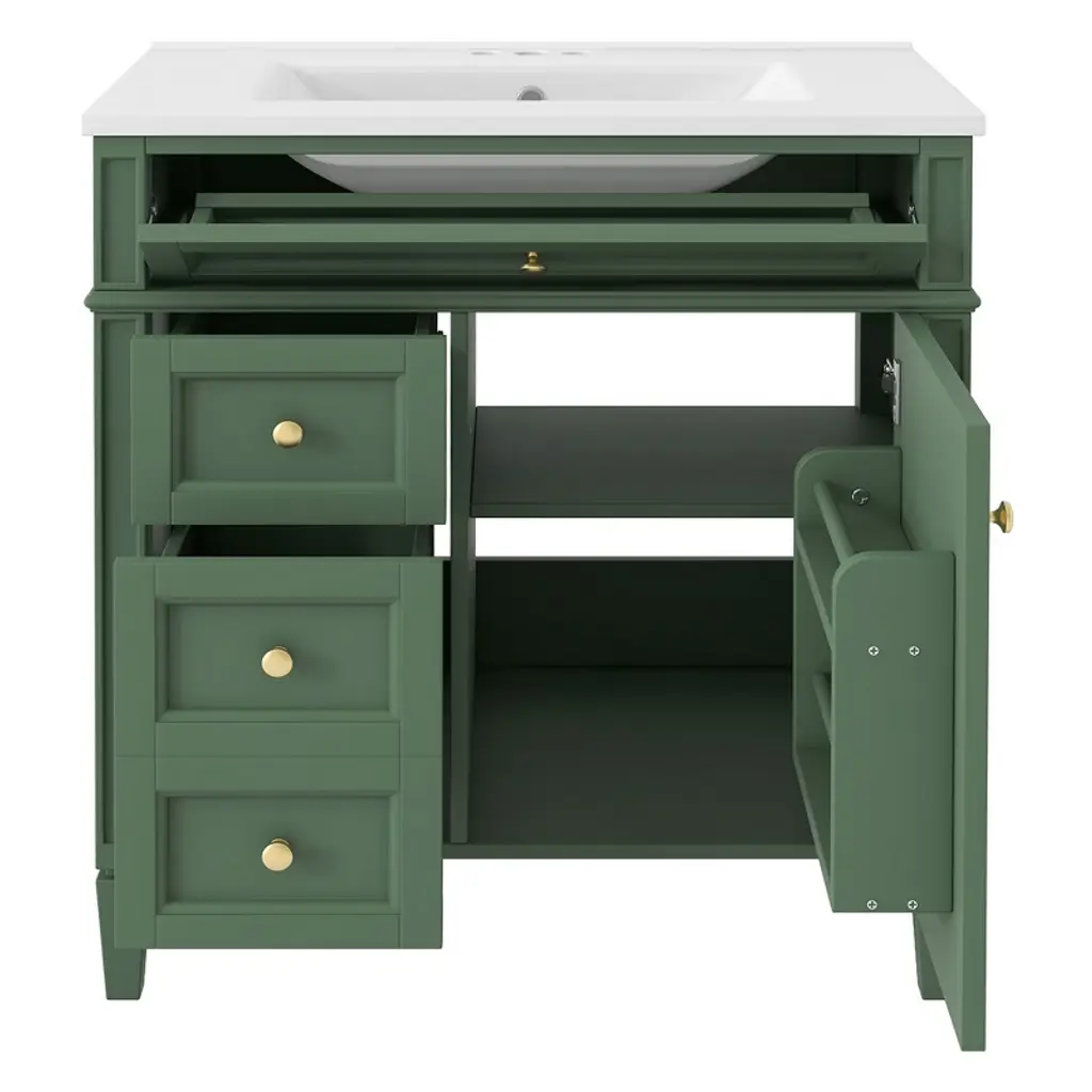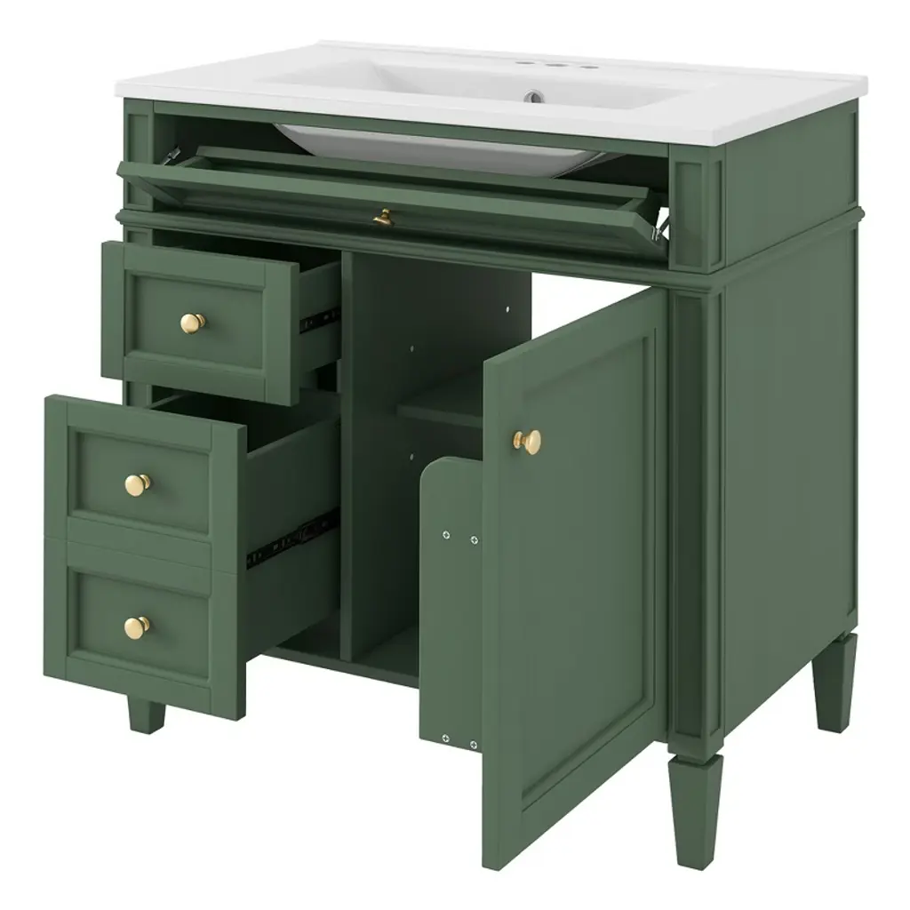 Tramull Green Modern Bathroom Vanity With Sink Top, 2 Drawers & Tip-out Tray, Storage Cabinet For Bathroom Decor, Easy Assembly