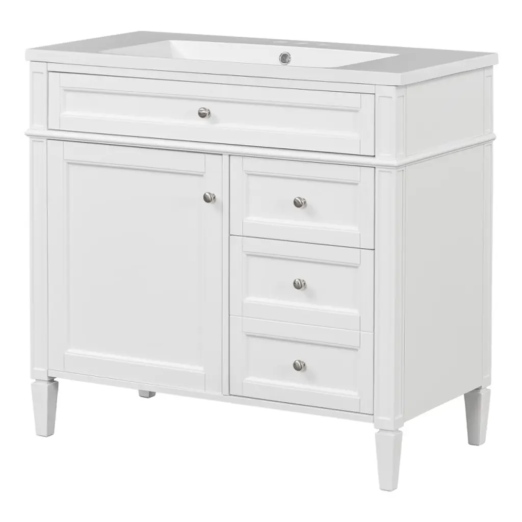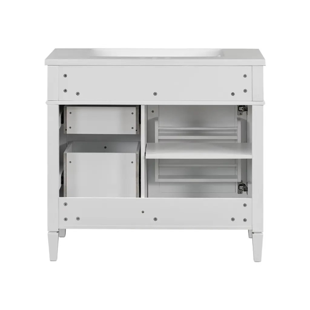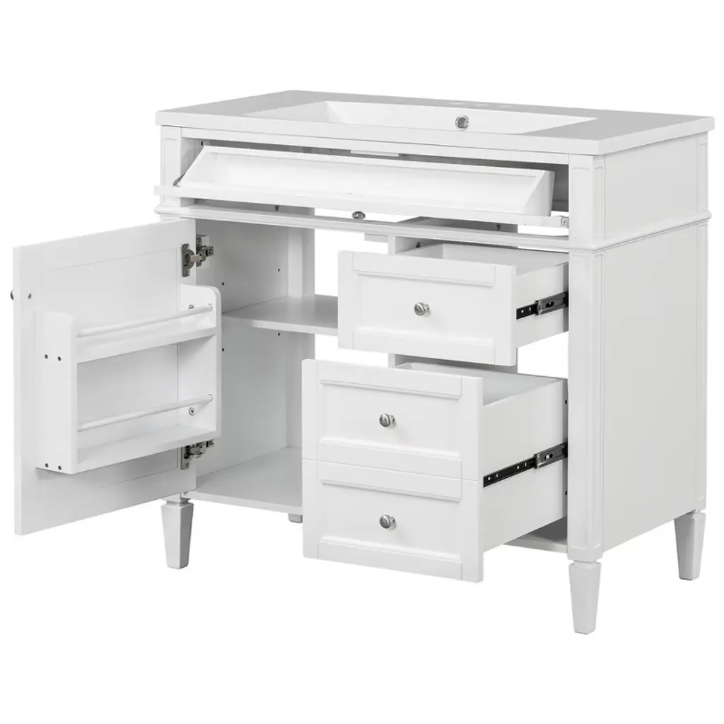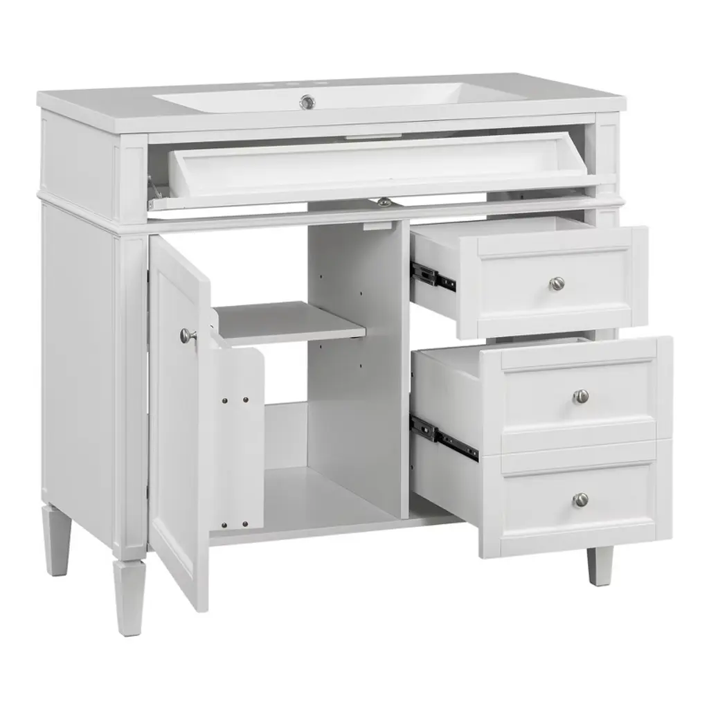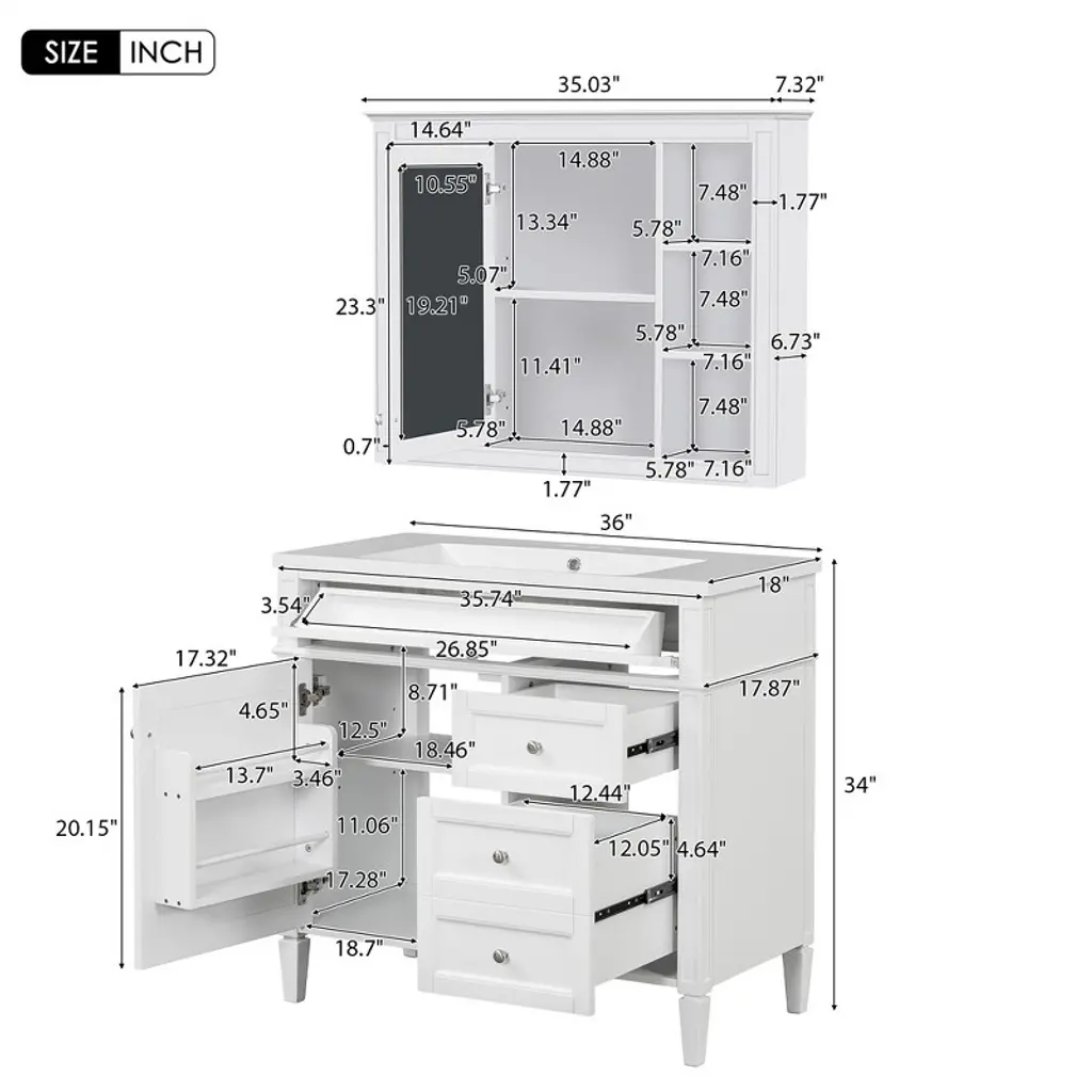 Tramull White Modern Bathroom Vanity Set With Sink Top, Mirror Storage Cabinet, 2 Drawers & Tip-out Tray, Soft-close Door