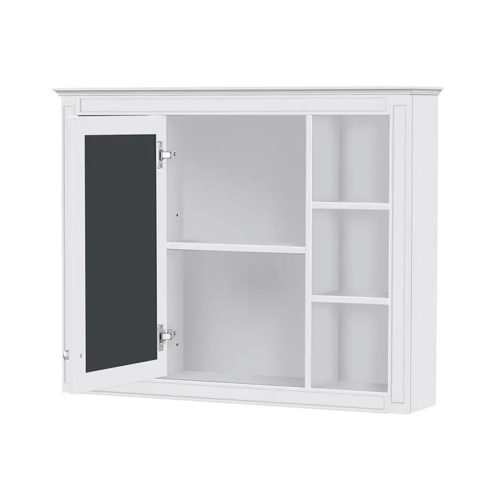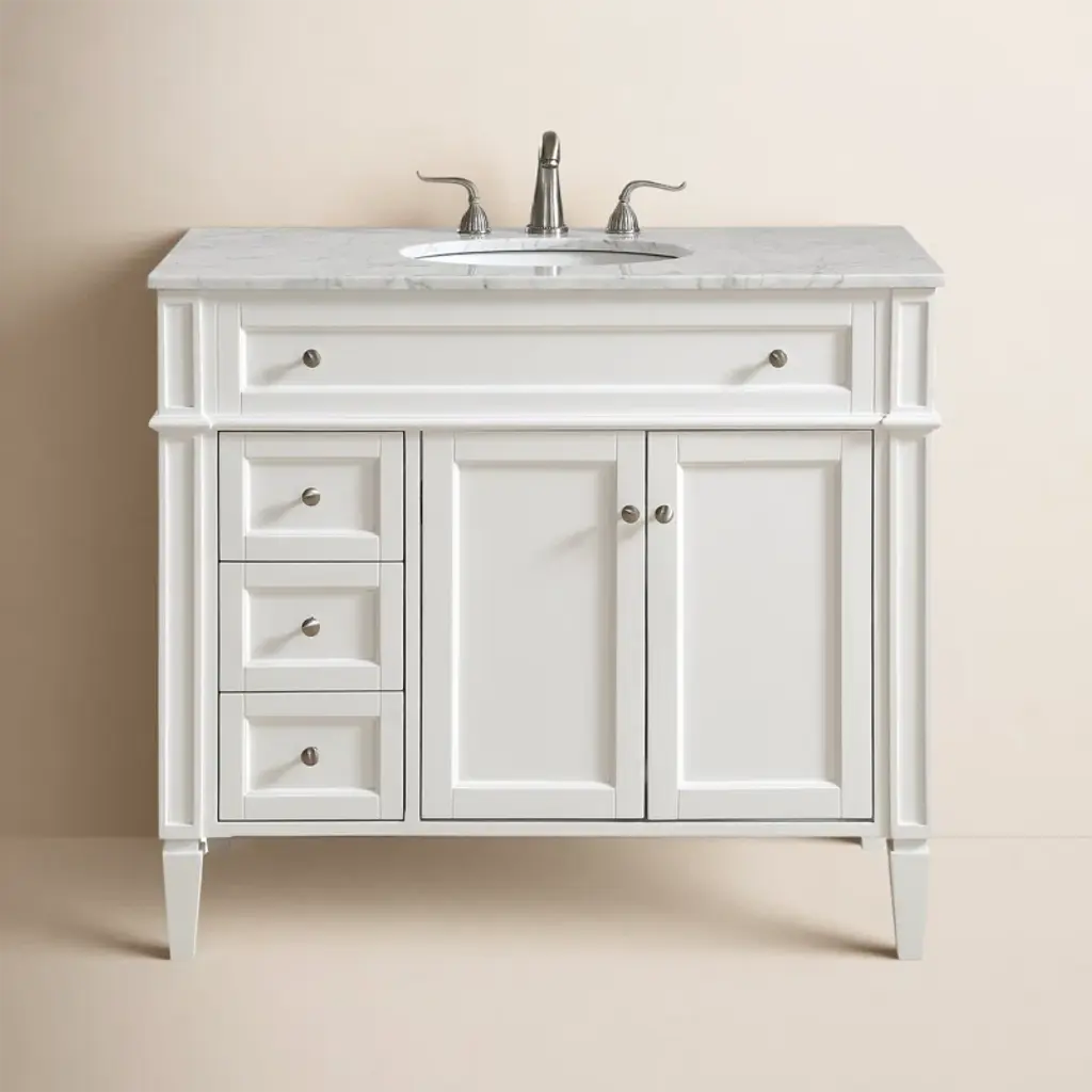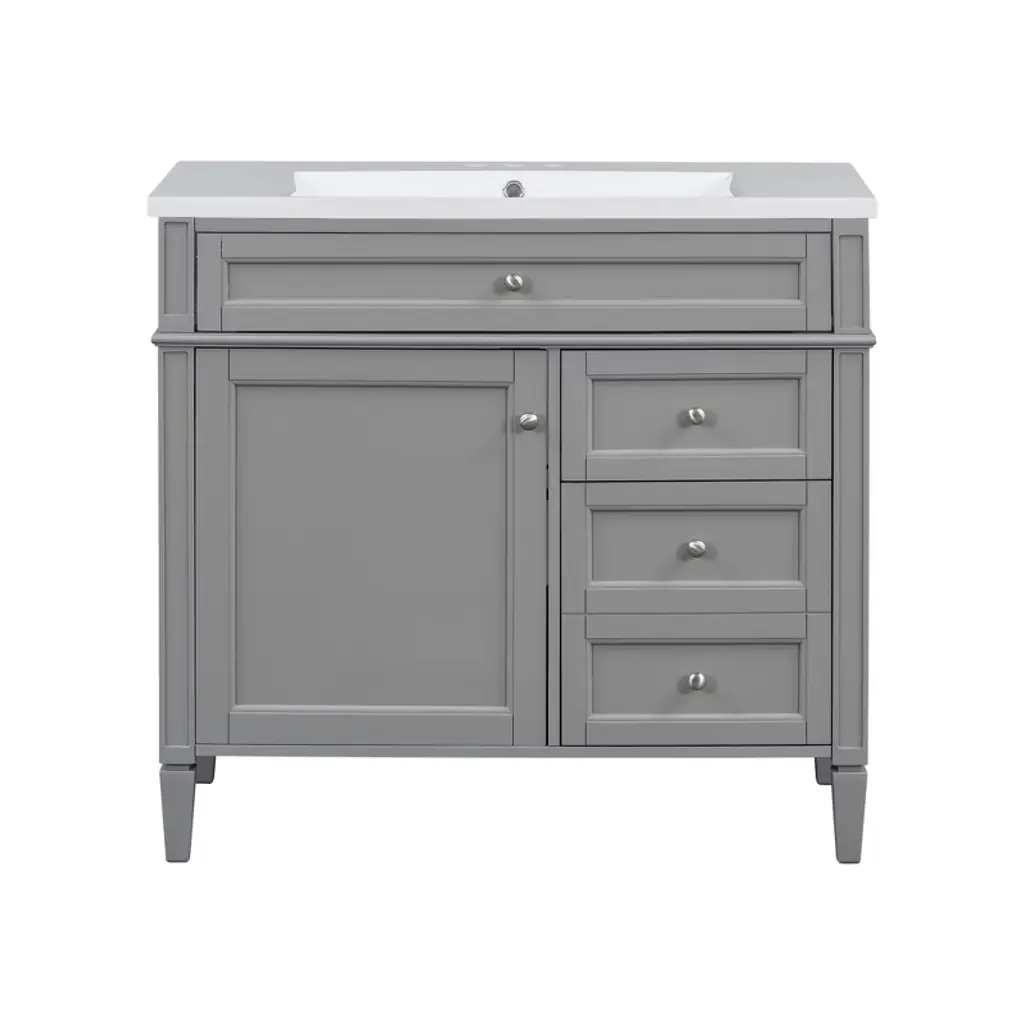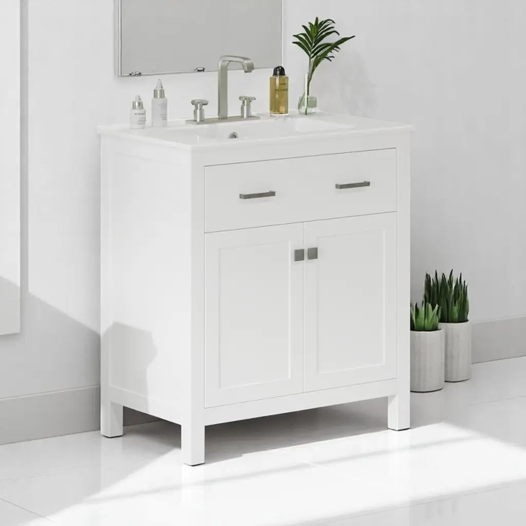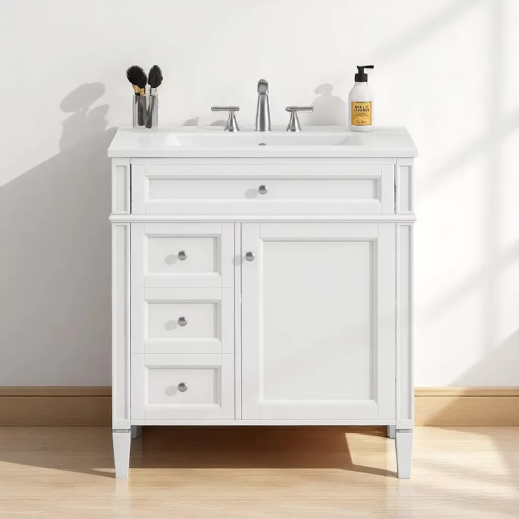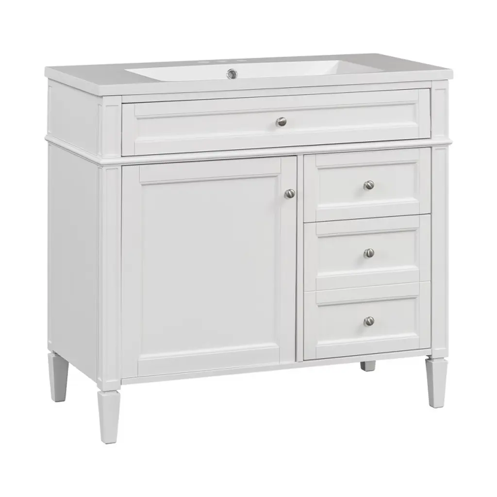 Tramull White Modern Bathroom Vanity Set With Sink Top, Mirror Storage Cabinet, 2 Drawers & Tip-out Tray, Soft-close Door
