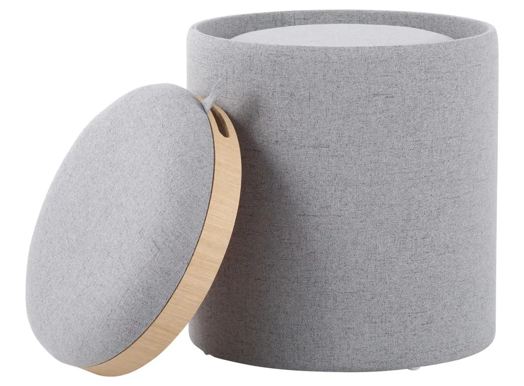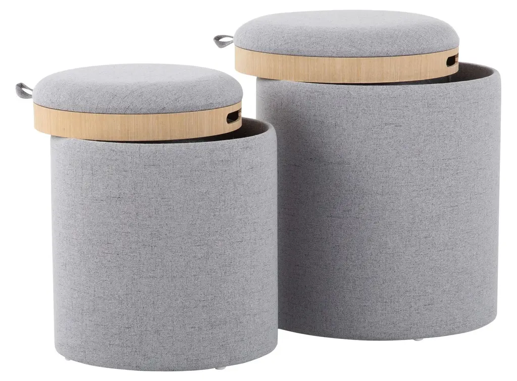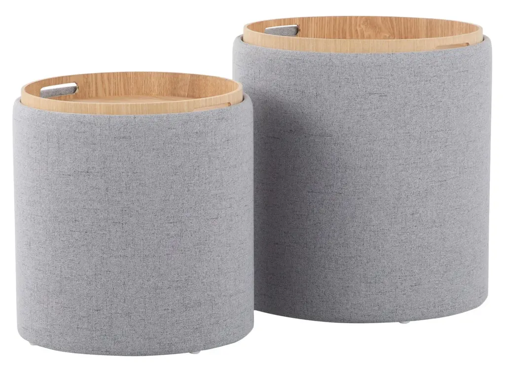 Tray Nesting Ottoman Set, Natural Wood, Gray Fabric