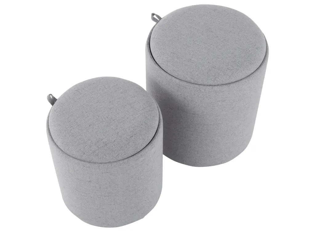 Get style and function in one with the Tray Nesting Ottoman Set by LumiSource. This multi-use ottoman set can be used as extra seating, storage, or a convenient serving tray when the top is turned over. The smaller ottoman nests inside the larger ottoman for a space-saving design. Available in a variety of colors and finishes, pick the one that fits your space the best. LARGE: 15.5"L x 15.5"W x 17.5"HInside Length: 14.5"Inside Width: 14.5"Inside Height: 15.5"SMALL: 13.75"L x 13.75"W x 15"HInside Length: 12.75"Inside Width: 12.75"Inside Height: 13.5"