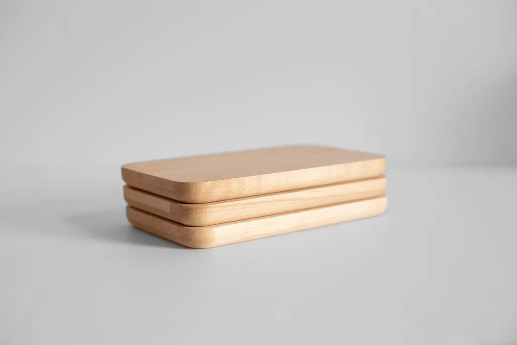 Simple wooden trays cut from a solid piece of material. Available in a set of two nesting trays and three breadboards.Kalon collections are built by small teams of master craftsmen in the United States using a mix of traditional and highly technological methods and a 360 degree approach to sustainability.