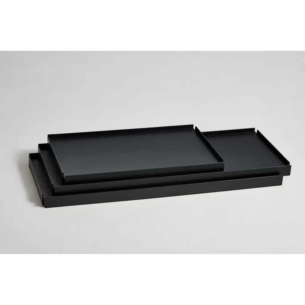 Tray shelf by Woud consists of a thin metal frame and wooden shelves in two sizes: the smaller, tray-like shelves provide space for higher books, vases and other objects. The shelves can be arranged freely on different levels in the frame. Designed by Hanne Willmann, Tray shelves are a harmonious combination of German solid construction and Japanese airy elegance.