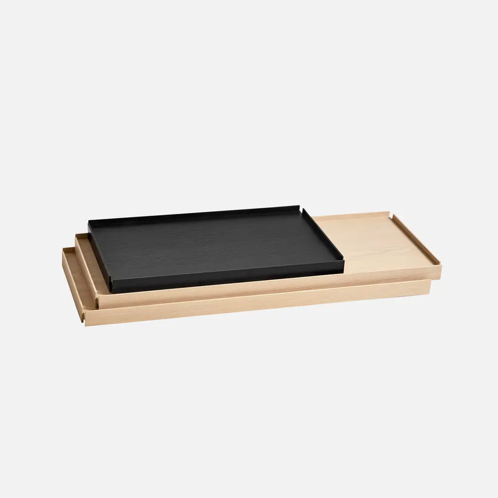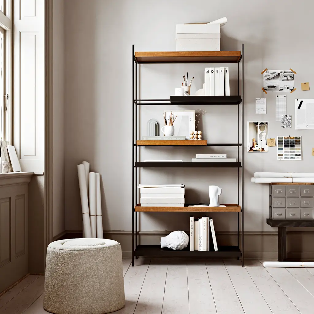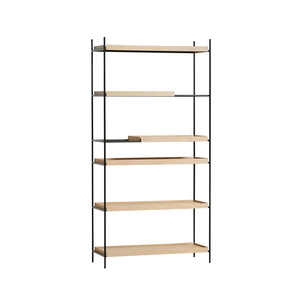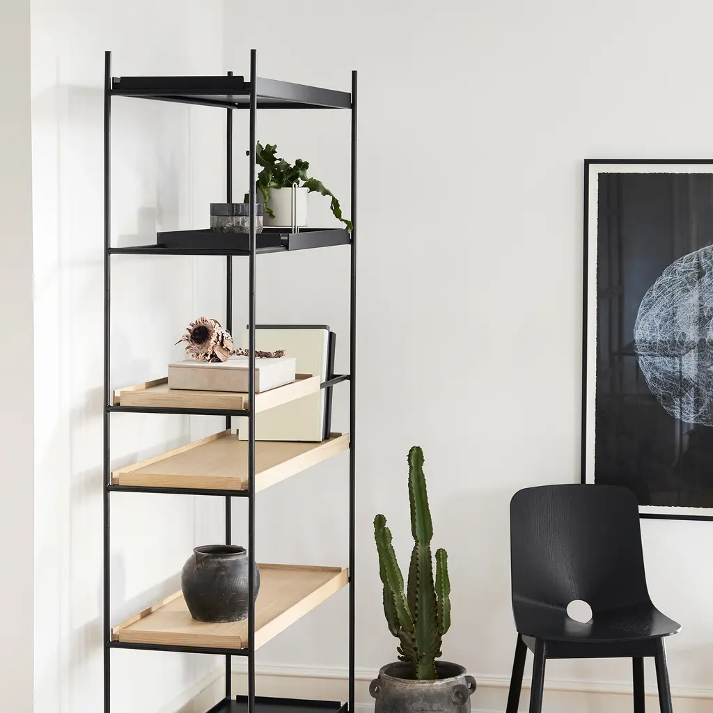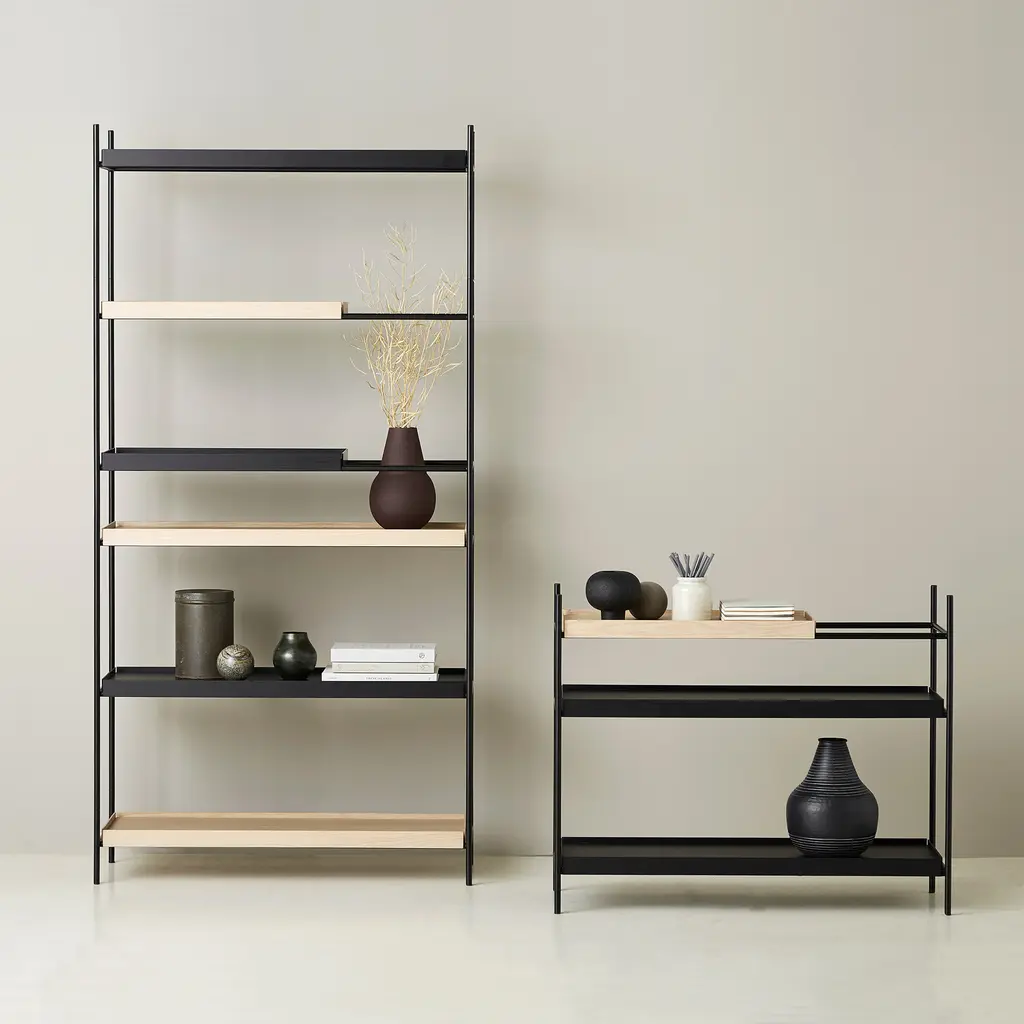 The Tray Low Shelf, designed by Hanne Willmann for WOUD, marries the simplicity and elegance of a shelving solution to meet aesthetic and functional needs The unique feature of this unit is its adjustable, reconfigurable trays is made to match a variety of objects – from books to vases The clean lines down to the decorative element and the perfect design make this a versatile piece that enhances any room, be it an entryway, living room, or office. The flexibility of the trays allows for individual displays, making this shelving system not just a piece of furniture, but a canvas for your own style
