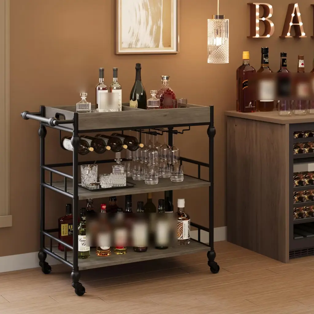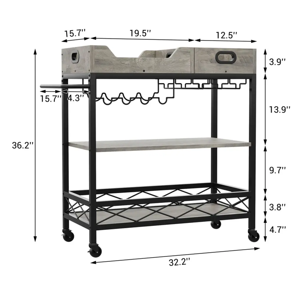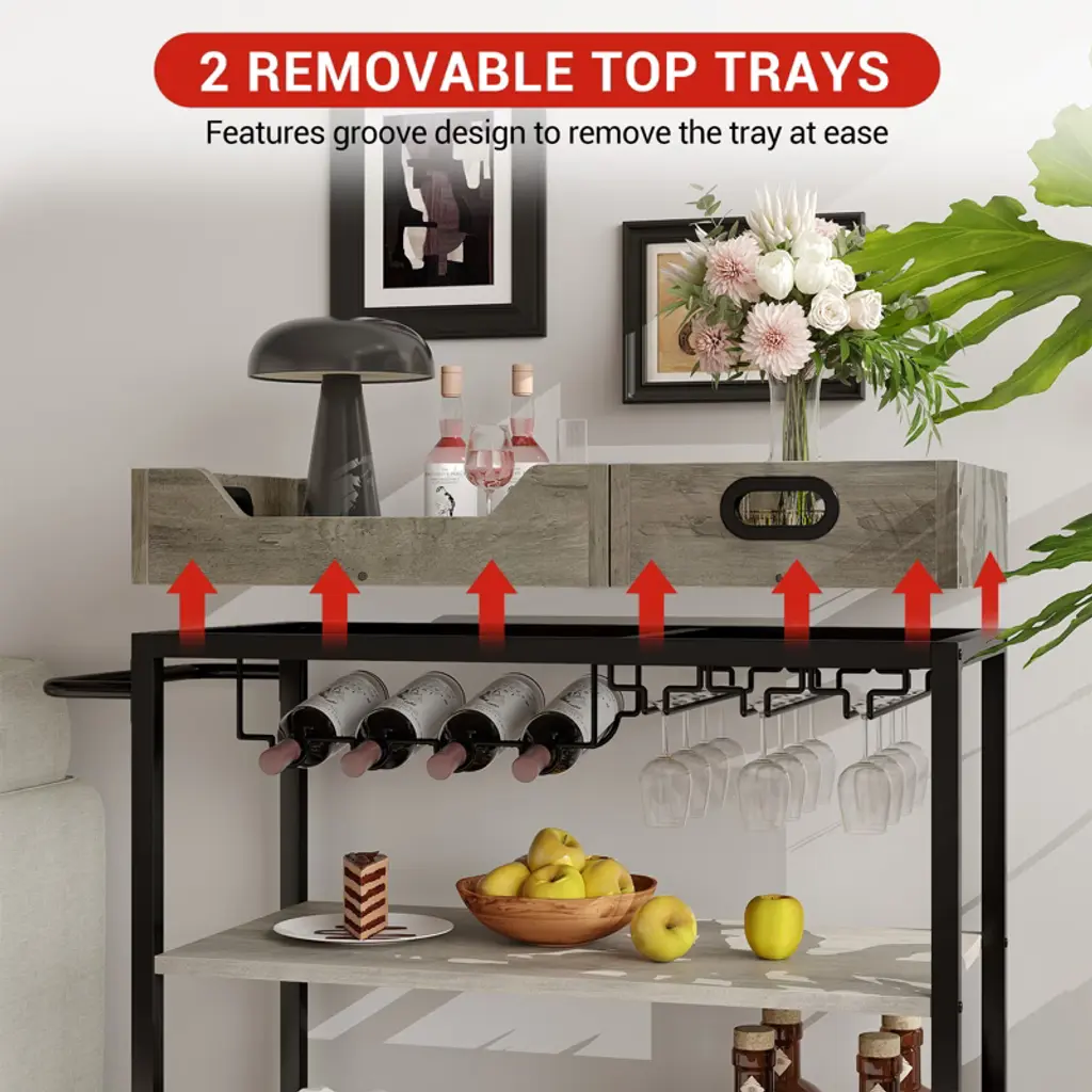 Tray Style Service Cart Set - Mdf Tray Cart, Metal Tray Cart, Kitchen Utility Cart, Durable Construction, Easy Mobility
