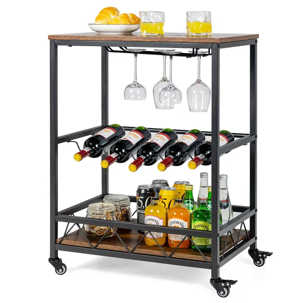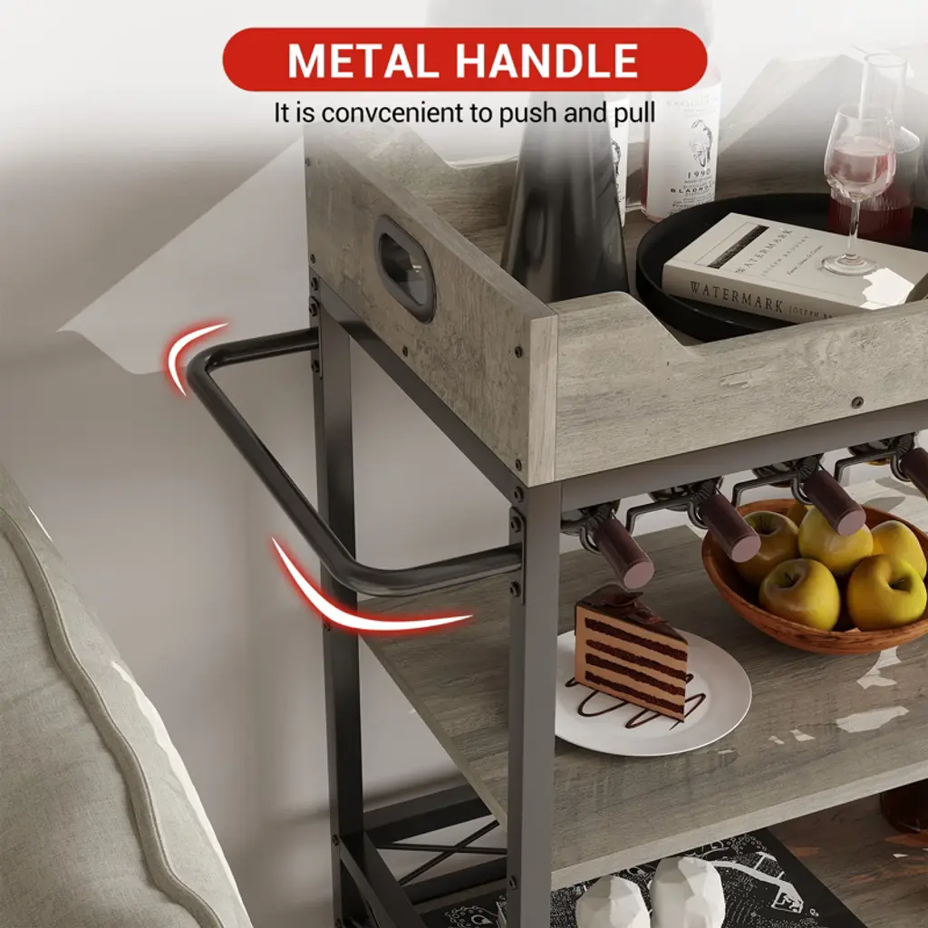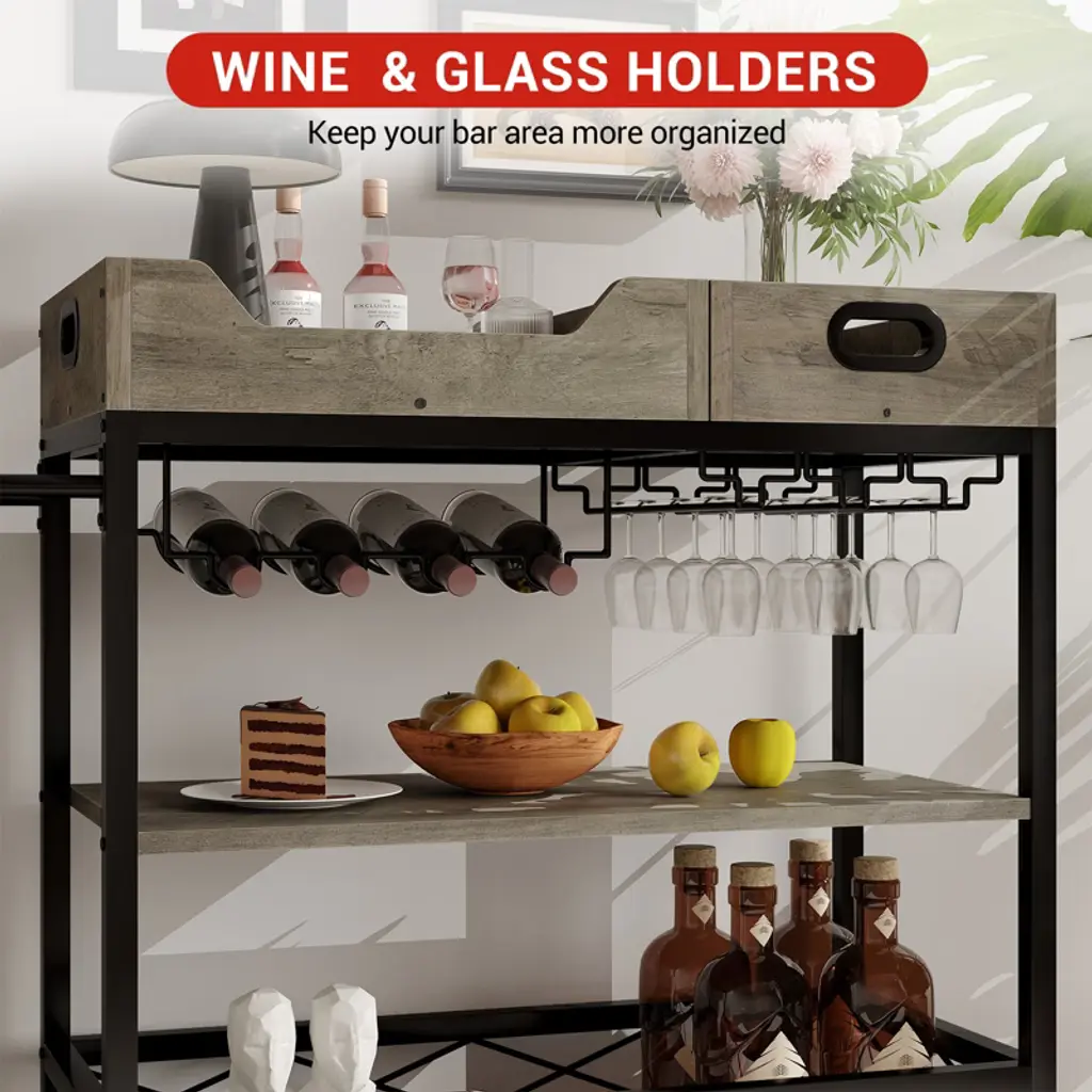 Tray Style Service Cart Set - Mdf Tray Cart, Metal Tray Cart, Kitchen Utility Cart, Durable Construction, Easy Mobility