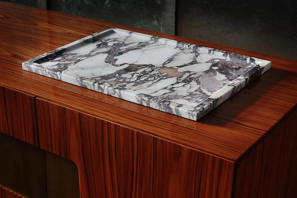 The name Trayano is a skilful play on words that evokes the functionality of a tray and the splendor of imperial Rome for a piece of furniture made entirely of precious marble. Trayano is inspired by the need to organize and circumscribe objects in a circumscribed and defined space, which in turn has a precise decorative value. Trayano, available in three formats and four dimensions, is made of a single slab of marble, 2 centimeters thick, carved inside to obtain edges in slight relief. Often placed on the glossy lacquered surfaces of the Casa Casati collection, Trayano, rigorously in matt marble to create an interesting contrast of finishes, lends itself to welcoming everyday objects while preserving the integrity and brightness of the brilliant surfaces.Trayano is available in square shape (44x44 cm), rectangular shape (50x36 cm) and round shape (two sizes, diameter 36 or 44 cm respectively). The indicated price is for the square or rectangular model. The circular models cost 1,100 and 1,430 euros.