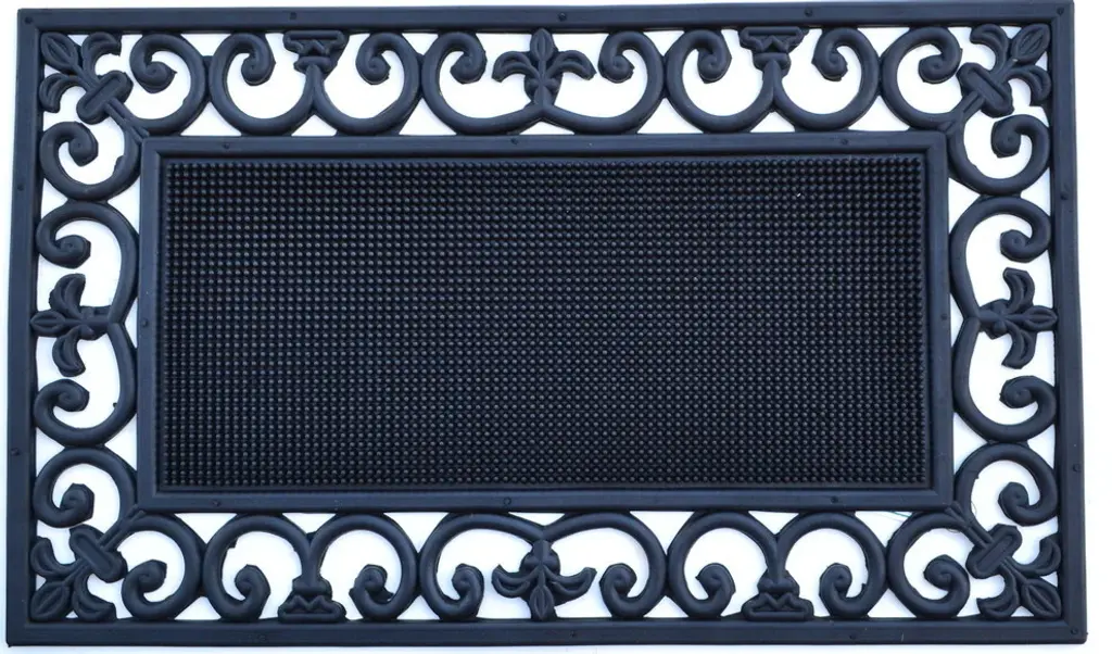 Wrought iron rubber mats mixes vulcanized natural rubber and recycled rubber to form an elegant mat that is resistant to dust, skidding, and is durable. These mats are optimal for areas exposed to moisture such as pool sides. These mats are about 1/2" thick.