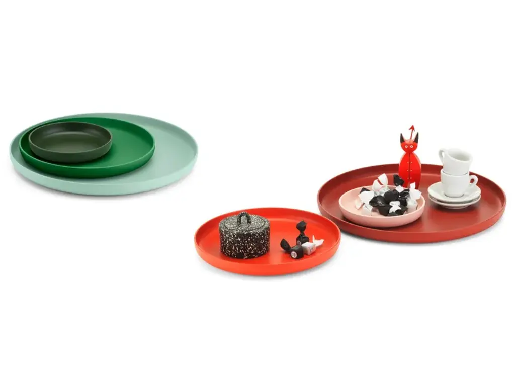 At first glance, the Trays appear to be simple, flat dishes made of plastic. They were, however, developed by Jasper Morrison as a set of three, in carefully harmonised colours and sizes, in accordance with his ‚super normal‘ design philosophy. They can be readily combined, and are also perfect companions for Morrison‘s Rotary Tray and High Tray. The understated Trays tidy up any space while also adding a decorative accent.- Material: textured ABS plastic.- Package contents: set of three trays in different sizes.