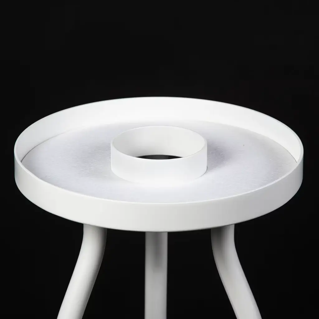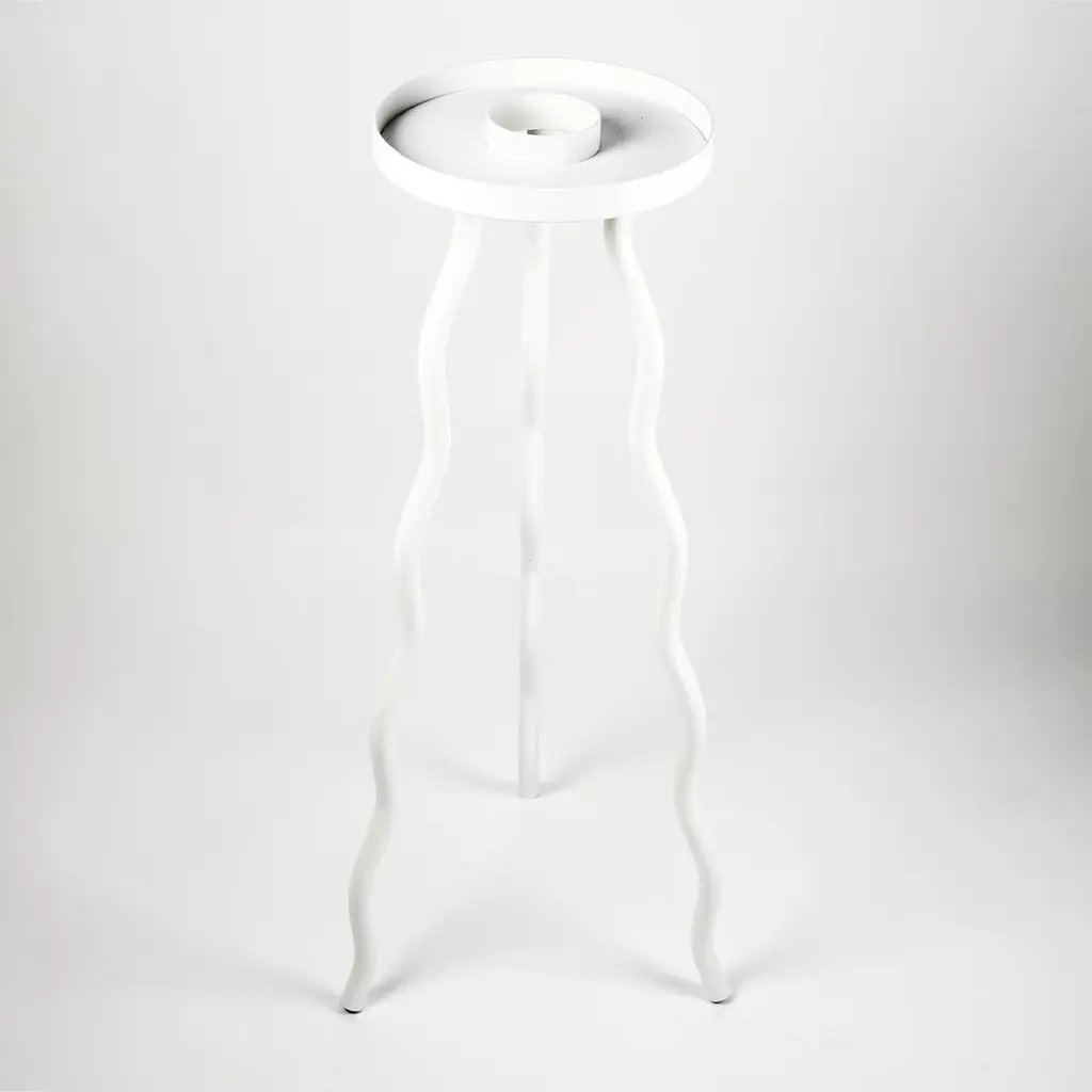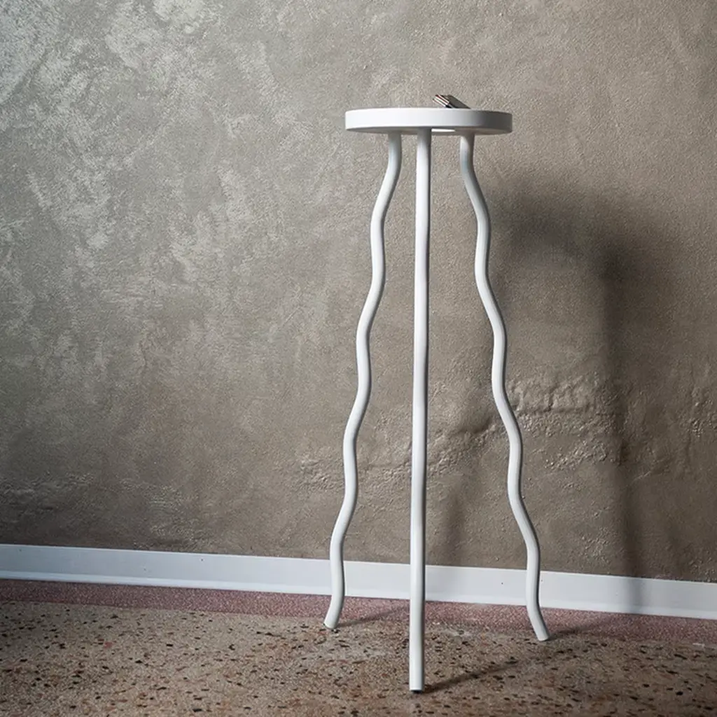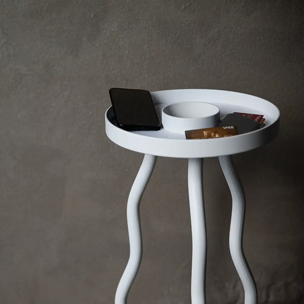 A brilliant, contemporary interpretation of an empty-pocket tray, this extraordinary design will make a sublime and unexpected addition to the entryway of a modern interior. Entirely and skillfully crafted by hand of white-lacquered iron, it features three dainty, undulating legs and a round top inspired by Ignazio Romeo's Hypnosis artwork. Please consult the Concierge for customization options.