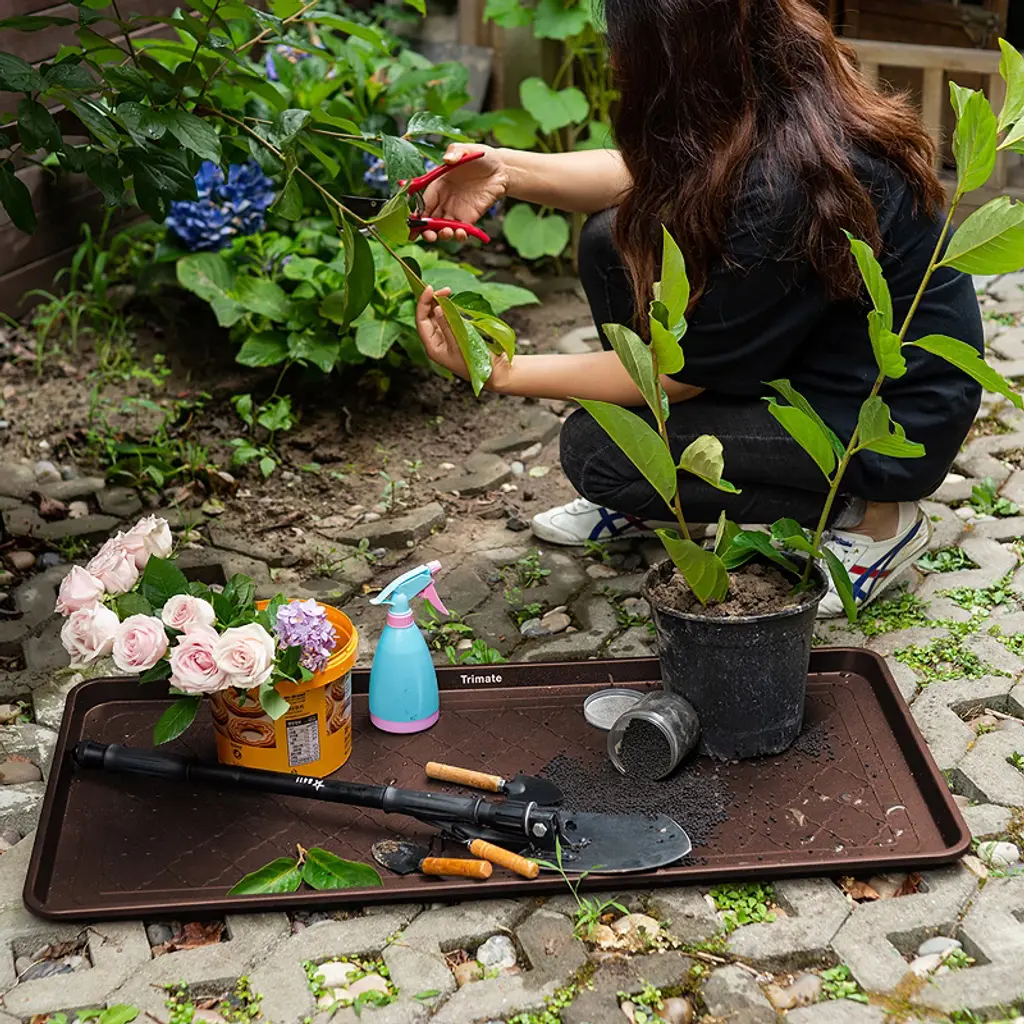 Protect your floors and other surfaces from water, mud and paint damage with the Extra Large Boot Tray by Trimate. The 40x20 inch oversize allows it to store more things. The tray is made of 100% recycled polypropylene to stand up to daily exposure to water and dirt. The tray features a 1.25 inch raised lip to contain messes, protect your hardwood, tile and laminate floors from damage, and prevent injury from slipping on wet floors. The tray easily rinses clean with water and a soft cloth. You can use this tray both inside in your entryway or mud room, or outdoors on your porch, deck or patio. It also helps contain messes from pet food bowls, cat litter boxes, potted plants, and paint cans.