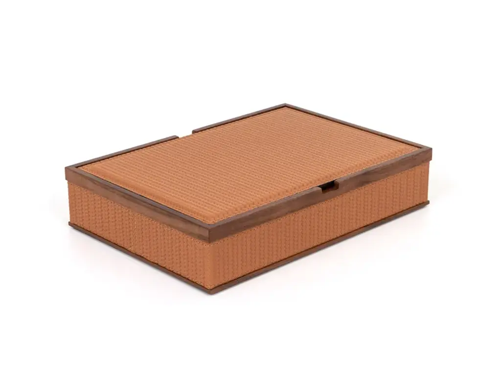 Trusty is the line of pocket emptier containers designed by Poltrona Frau Style & Design Centre in different sizes and color configurations. Perfect to be placed in any room of the home, from the entryway to the service areas, the stackable containers are suitable for storing small items to have on hand at all times. An accessory that celebrates craftsmanship through a design language of understated elegance and essential lines with a great deal of attention to detail. TTrusty is the leather pocket emptier tray made of two layers of Pelle Frau® leather combined with tone-on-tone stitching, available in three sizes - Large, Medium and Small - and in several striking color configurations from the Pelle Frau® leather catalog. An accessory of the highest quality, Trusty is the perfect design accessory for organizing personal items with class and sophistication.