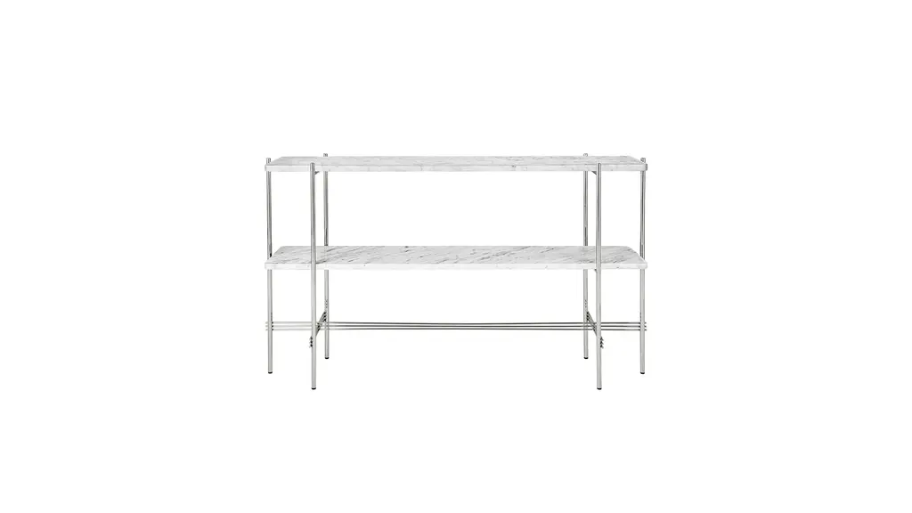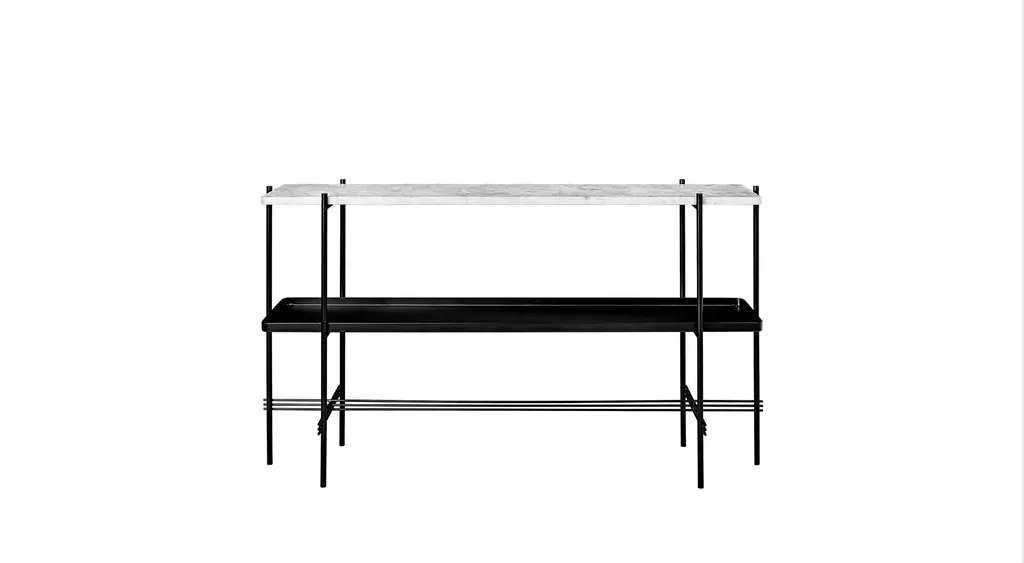 An elegant marble table that blends rich materiality with a graphic design. TS, short for The Standard, is inspired by an Art Deco building in Copenhagen of the same name. The table collection is the work of design duo GamFratesi, whose work blends Danish craftsmanship with Italian conceptualism.The round marble tabletop is supported by a black lacquered frame, referencing materials found in the original TS building. The sophisticated marble top, balanced by its simple black frame, creates a composed, yet statement-making design.The collection is manufactured in Denmark by Gubi - a Copenhagen-based purveyor of both historic and contemporary design.