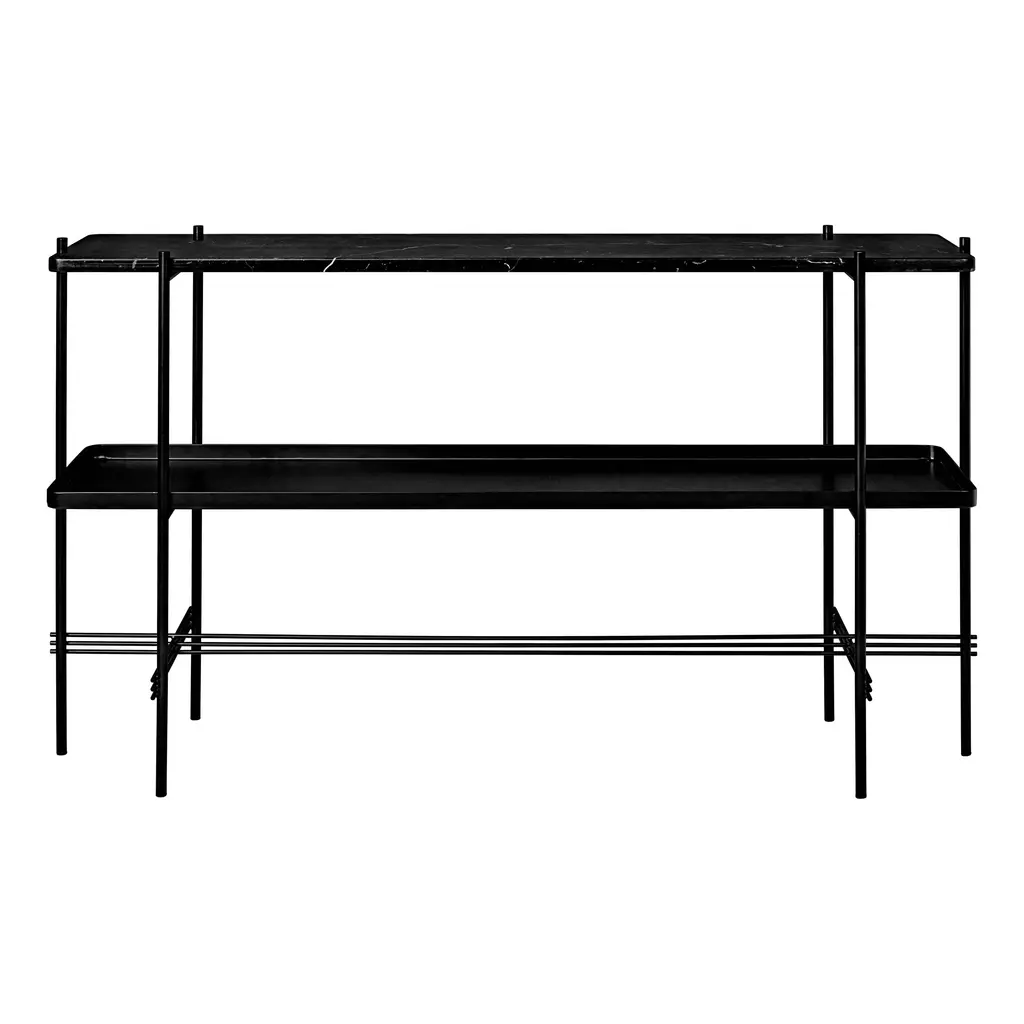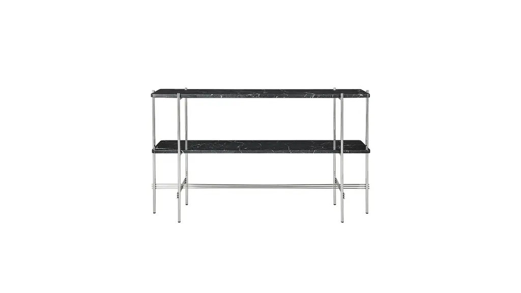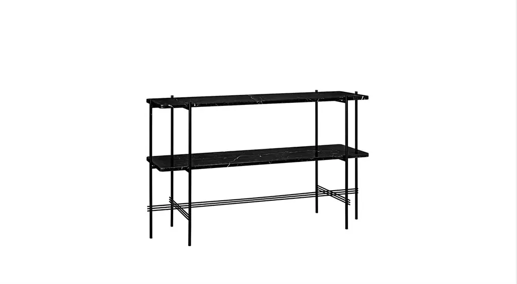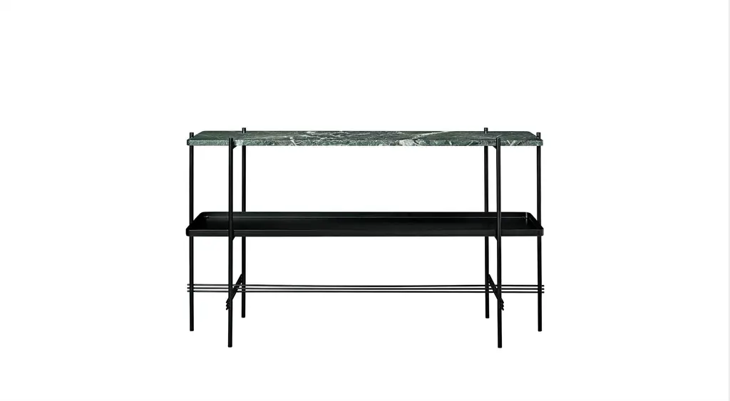 An elegant marble table that blends rich materiality with a graphic design. TS, short for The Standard, is inspired by an Art Deco building in Copenhagen of the same name. The table collection is the work of design duo GamFratesi, whose work blends Danish craftsmanship with Italian conceptualism.The round marble tabletop is supported by a black lacquered frame, referencing materials found in the original TS building. The sophisticated marble top, balanced by its simple black frame, creates a composed, yet statement-making design.The collection is manufactured in Denmark by Gubi - a Copenhagen-based purveyor of both historic and contemporary design.