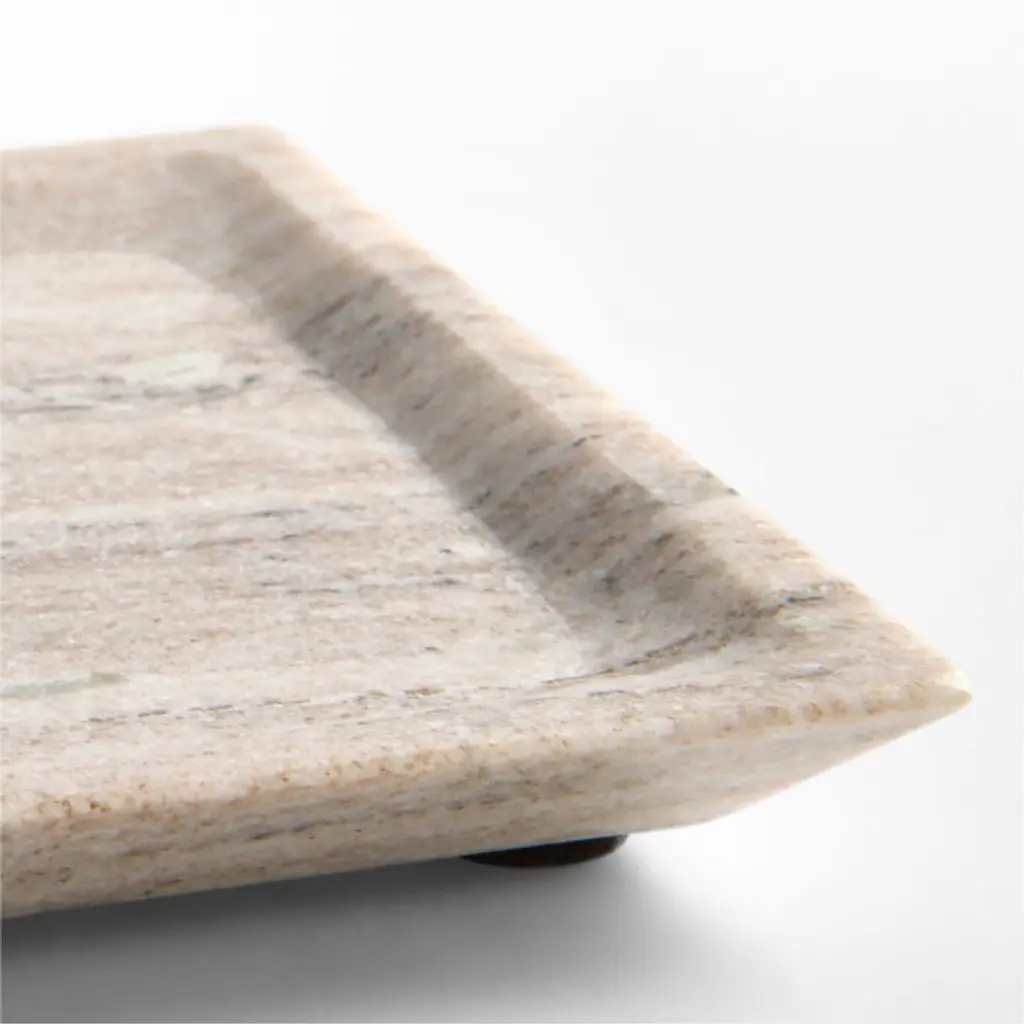 Inspired by the rustic warmth and organic beauty of central Italy, our Tuscan collection showcases softly neutral yet statement-making beige marble. Cut by hand and honed to a modern matte finish, each marble tray fascinates with subtle variations in hue, texture and veining. This low-profile square tray provides a warm, luxurious backdrop for whatever it holds, whether a candle on the coffee table, jewelry on the dresser or keys on an entryway console. Pair the small size with the larger versions for cohesive storage throughout a room.