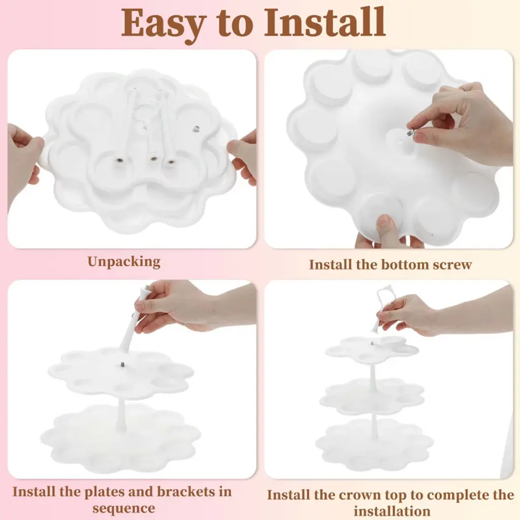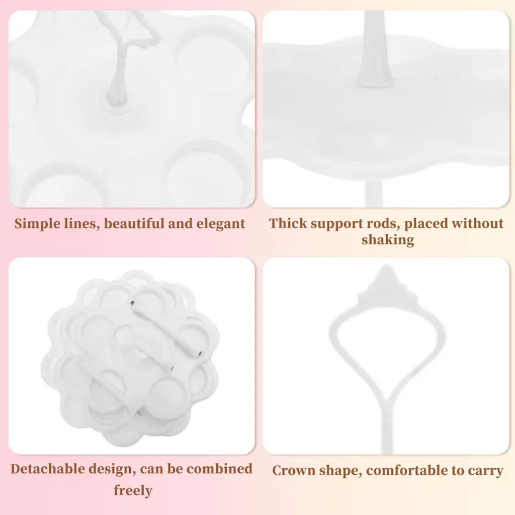 Feature: This cupcake stand holder is made from quality PP material, ensuring sturdiness and durability and having a long service time. This dessert cupcake stand makes it suitable for a wide range of occasions, including weddings, birthday parties, baby showers, and more. This cupcake stand holder is easy to assemble with no tools required, making it convenient to set up for your event. The adjustable tiers of this cupcake stand holder allow you to customize the display according to your needs. Featuring a space-saving design that allows you to save counter or table space while displaying a large number of cupcakes. Specification: Color: White Material: PP; Height: 35cm / 13.78"; Plate Size: 22cm / 8.66", 27cm / 10.63", 30.5cm / 12.01"; Package List: 1 Set Cupcake Stand Holder.