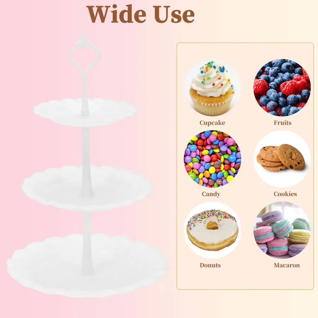 Unique Bargains 3-layer Round Dessert Cupcake Stand With Tiered Serving Tray For Pastries Donuts And Fruits White