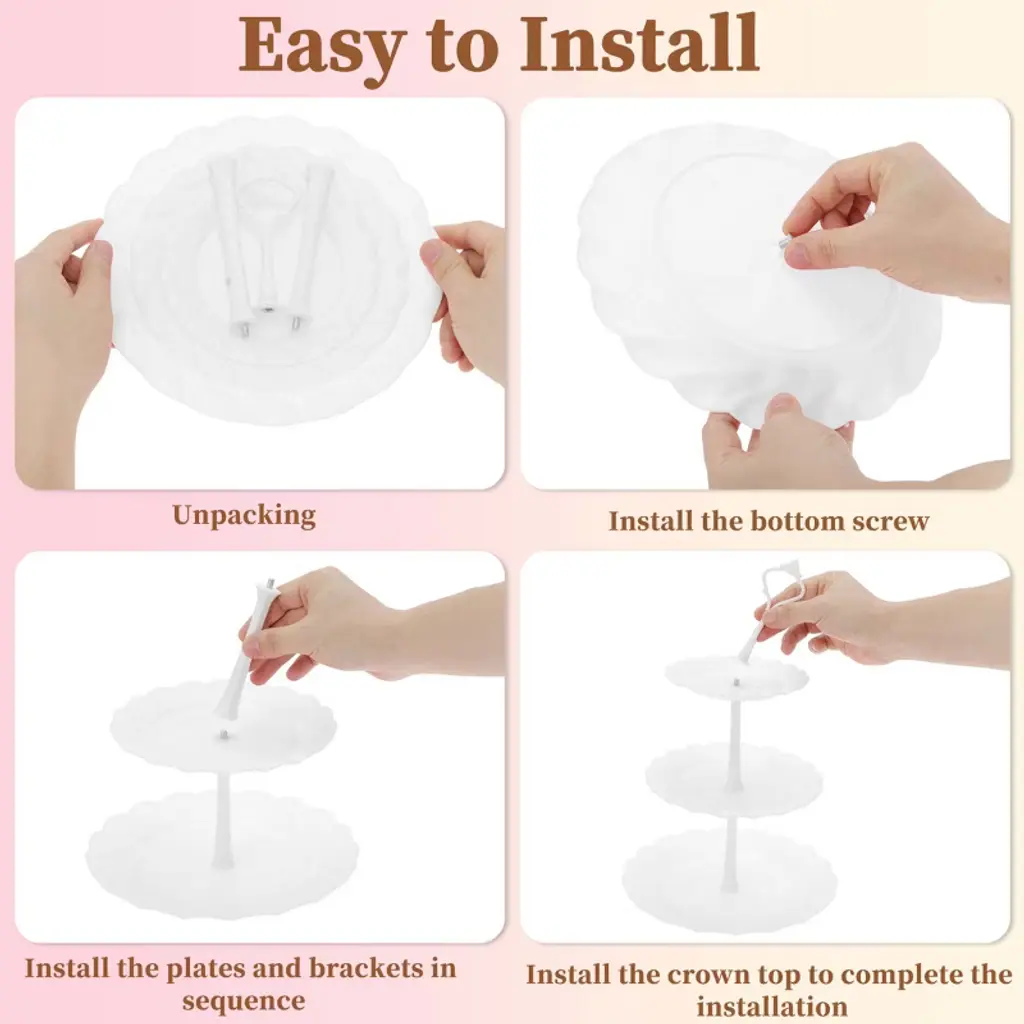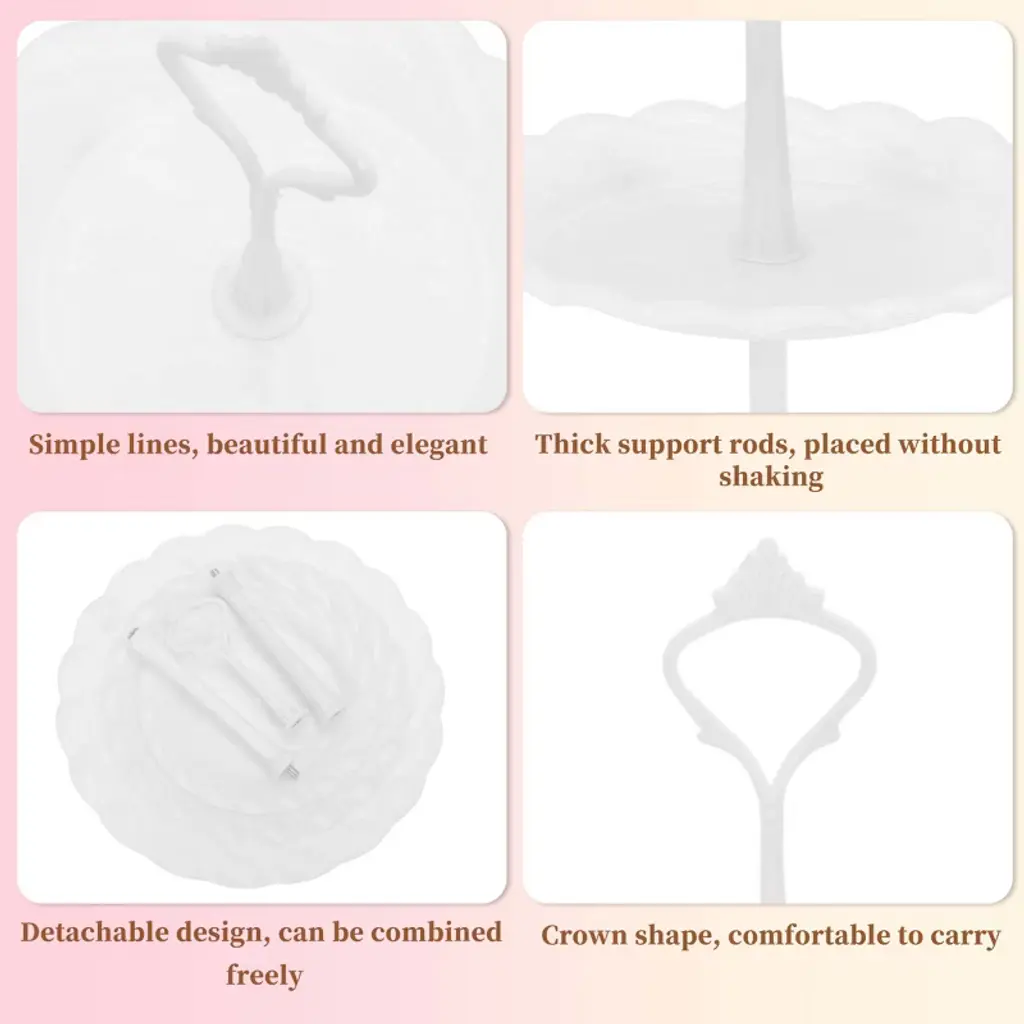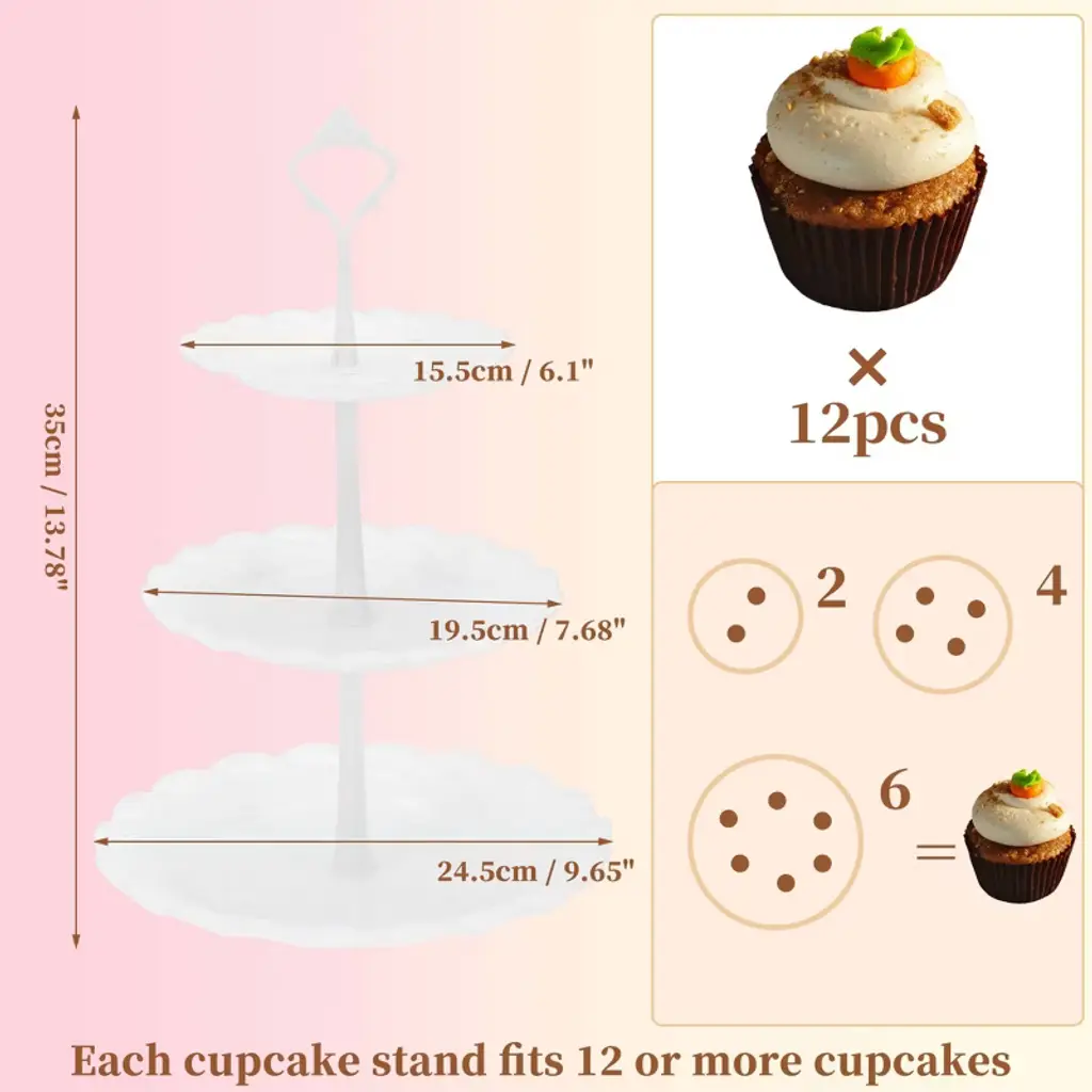 Feature:This cupcake stand holder is made from quality PP material, ensuring sturdiness and durability and having a long service time.This dessert cupcake stand makes it suitable for a wide range of occasions, including weddings, birthday parties, baby showers, and more. This cupcake stand holder is easy to assemble with no tools required, making it convenient to set up for your event. The adjustable tiers of this cupcake stand holder allow you to customize the display according to your needs. Featuring a space-saving design that allows you to save counter or table space while displaying a large number of cupcakes.Specification:Material: PP;Height: 35cm / 13.78";Plate Size: 15.5cm / 6.1", 19.5cm / 7.68", 24.5cm / 9.65";Package List:1 Set Cupcake Stand Holder.