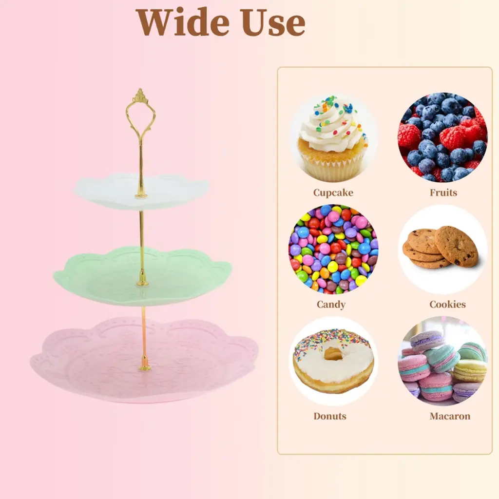 Unique Bargains 3 Tier Dessert Cupcake Stand Holder Round With Tiered Serving Tray For Donuts Fruits White Pink Green Gold Tone