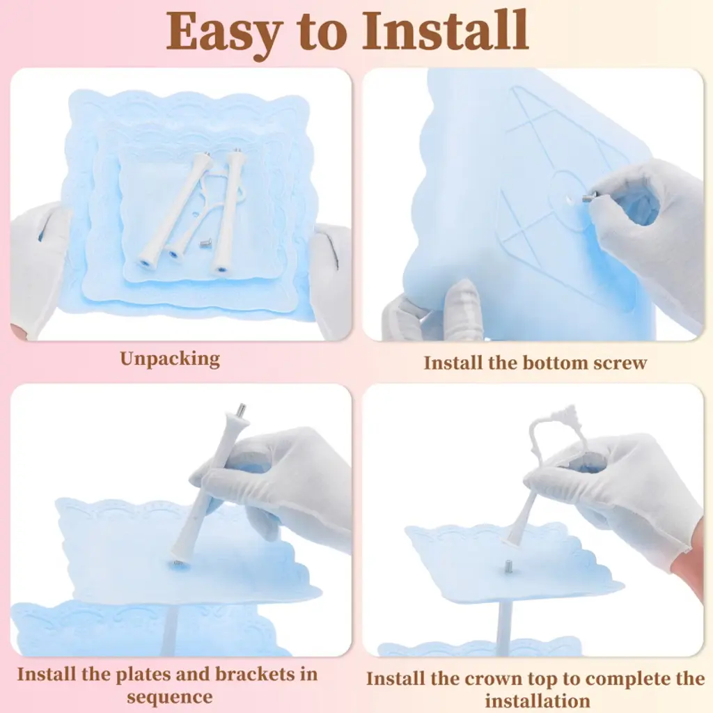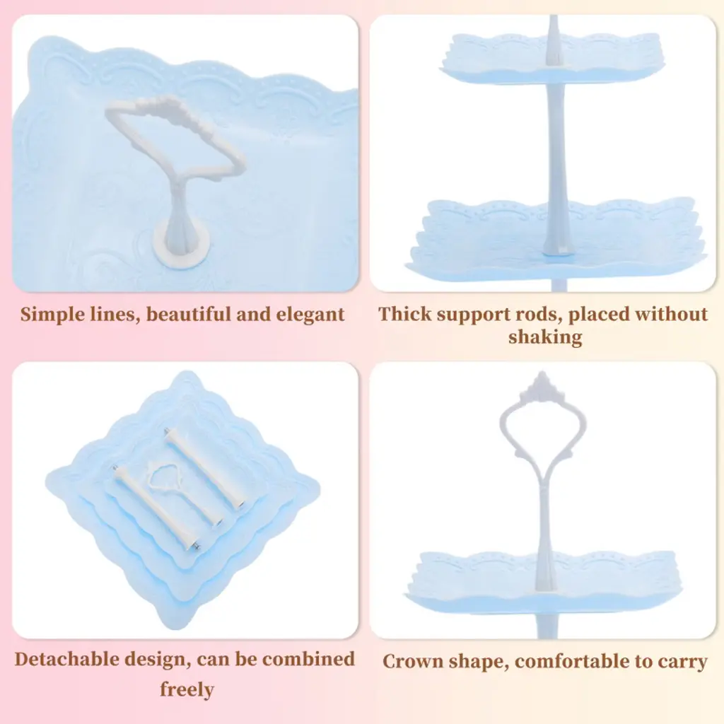 Features:This cupcake stand holder is made from quality PP material, ensuring sturdiness, and durability and having a long service time.This dessert cupcake stand makes it suitable for a wide range of occasions, including weddings, birthday parties, baby showers, and more. This cupcake stand holder is easy to assemble with no tools required, making it convenient to set up for your event. The adjustable tiers of this cupcake stand holder allow you to customize the display according to your needs. Featuring a space-saving design that allows you to save counter or table space while displaying a large number of cupcakes. Specifications:Color: Blue, WhiteMaterial: PPHeight: 35cm / 13.78"Plate Size: 14.5cm / 5.71", 19.5cm / 7.68", 24cm / 9.45"Package List: 1 Set Cupcake Stand Holder
