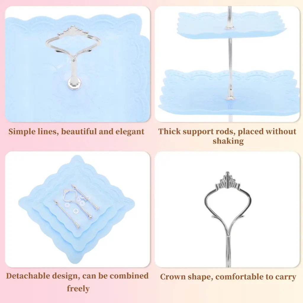 Unique Bargains 3 Tier Dessert Cupcake Stand Square With Tiered Serving Tray For Donuts Fruits Blue Silver Tone